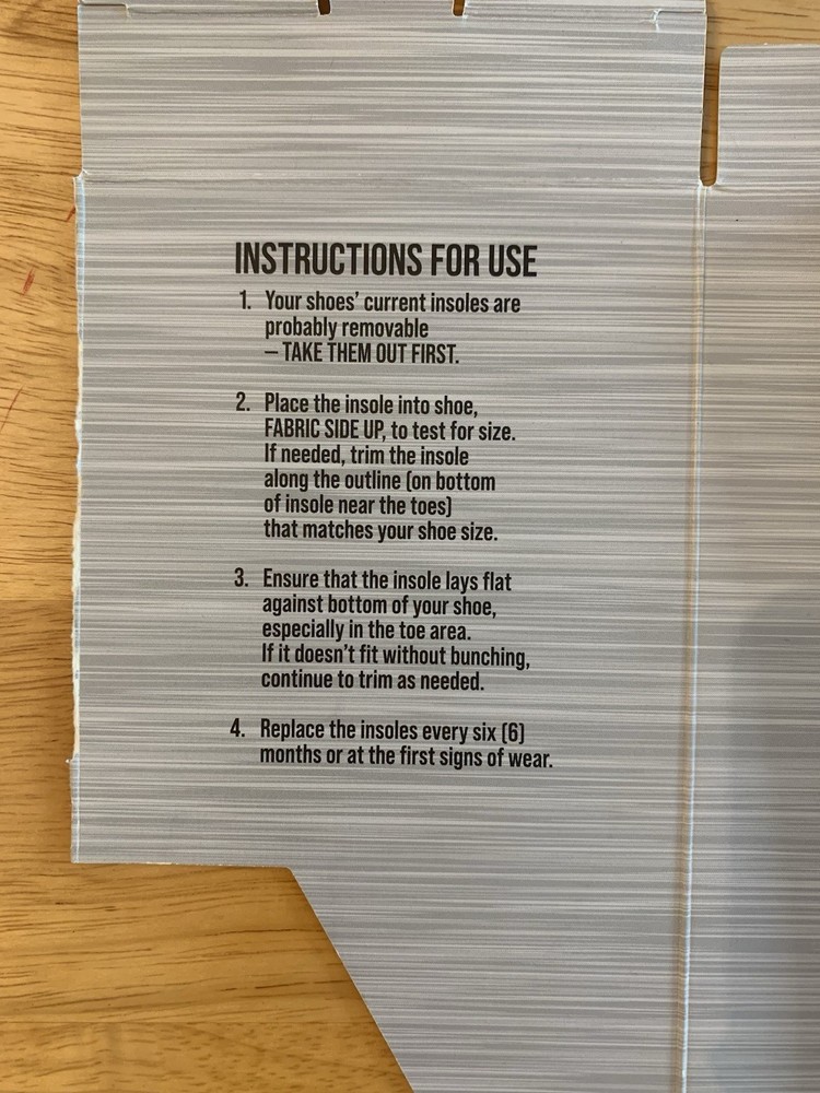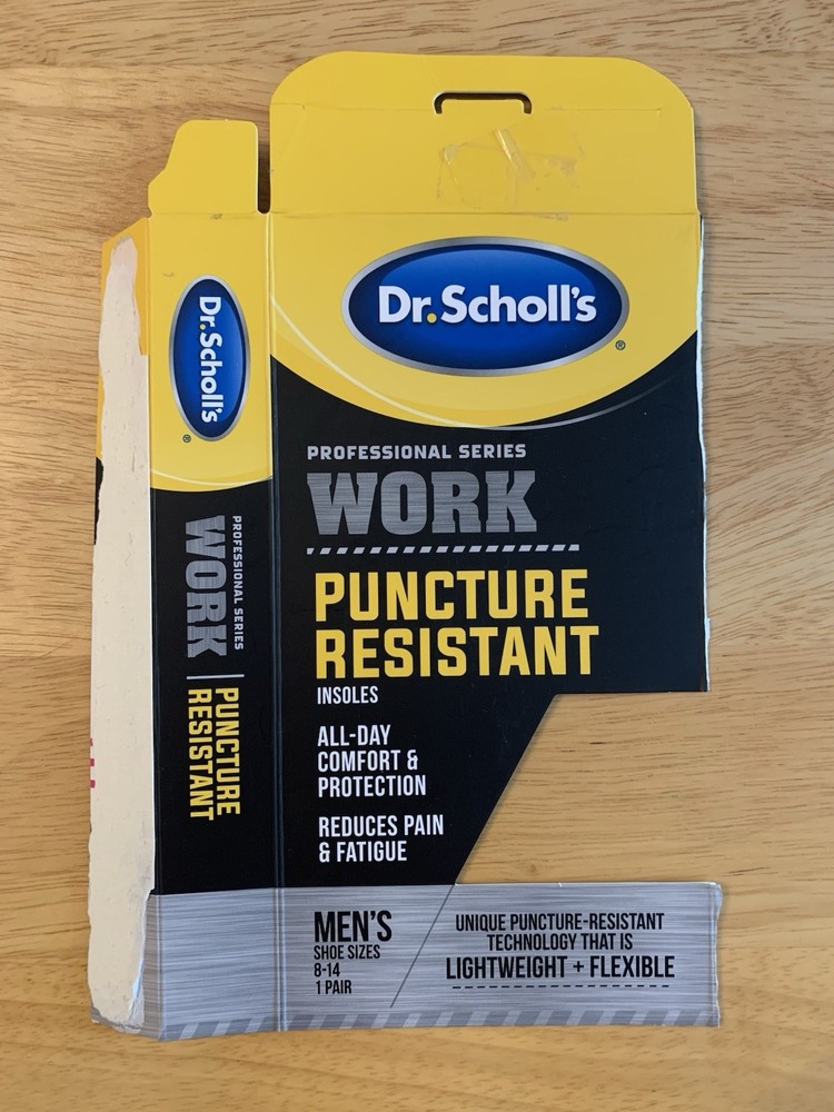 * Brand new, never worn or used insoles * Unique puncture resistant technology is lightweight & flexible; won't weigh shoes down * Multi-layer protection shields from accidental puncture wounds from sharp objects such as glass, metal, nails. Meets the requirements for OSHA & ASTM * Can be trimmed to fit (an industry first) * All day comfort & protection * Reduces pain & fatigue * Contoured arch for improved comfort & support