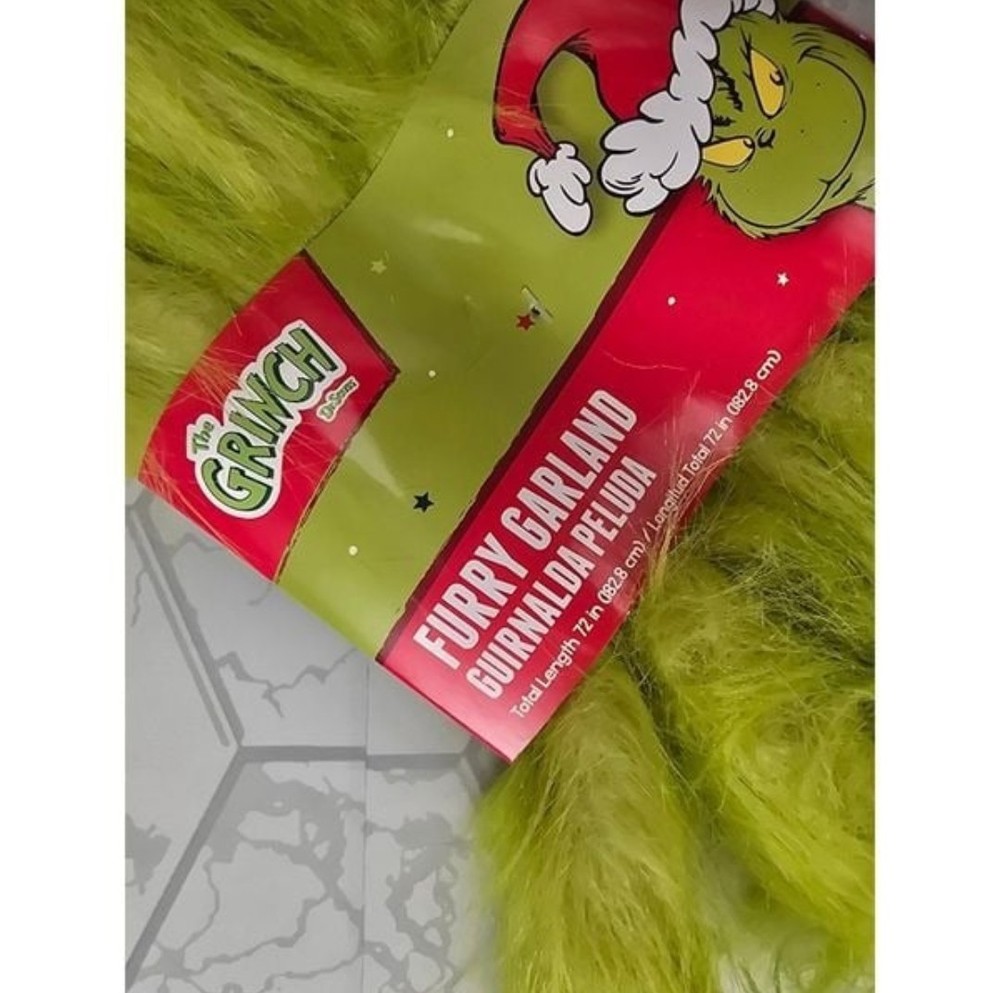 Multiple available. Get Grinchy and add The Grinch Who Stole Christmas, Grinch Garland to your holiday decorations this year! This is a fun way to get in the holiday spirt! The furry garland has soft yet grinchy feel on a 72 inch long garland. How adorable will this Grinch Garland look on your fireplace mantel or wall! Your family and friends will absolutely love your decorations! Deck your halls today with The Grinch Who Stole Christmas, Grinch Garland! .The Grinch Who Stole Christmas :72" long Furry Grinch Garland .Easy to hang •Grinch Green •Has a loop on each side to easily secure to your tree
