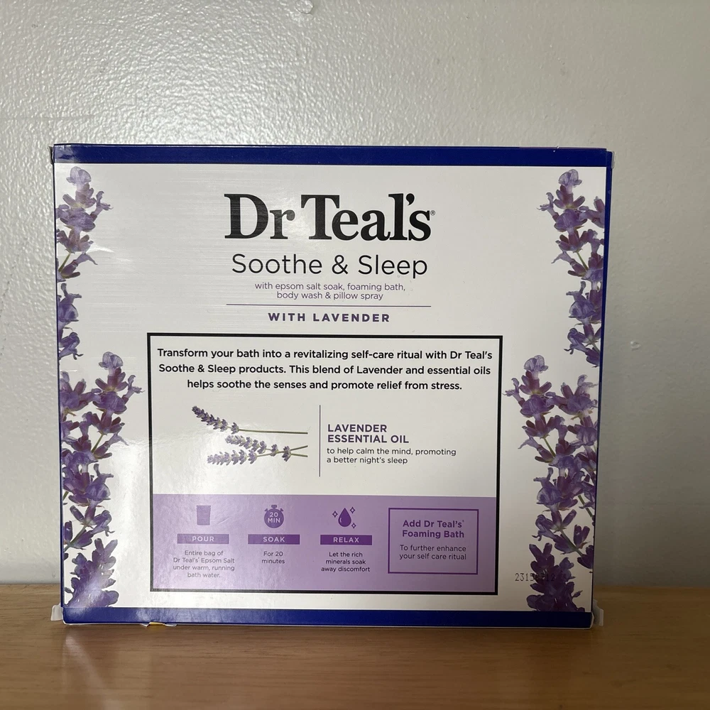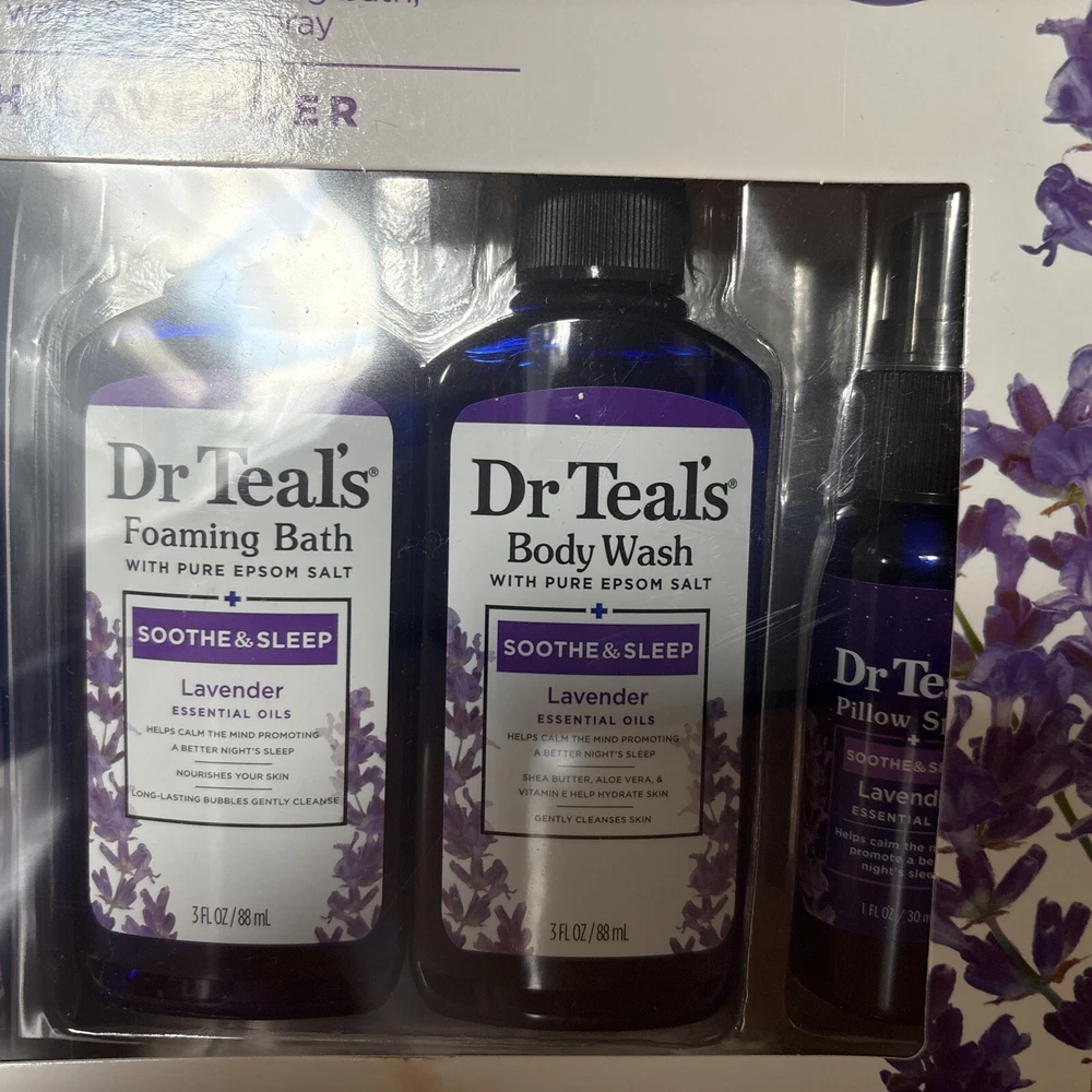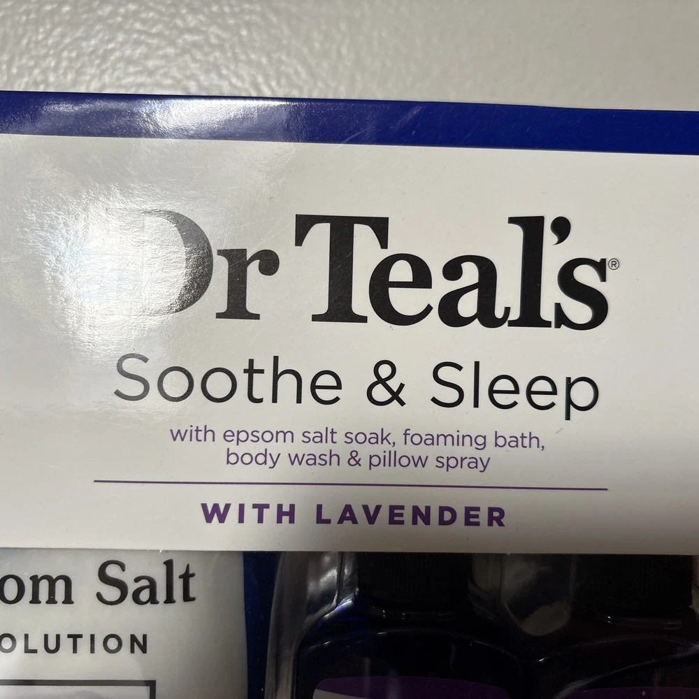 MPN:Not AppliedSize:RegularSet Includes:LotionIngredients:SaltBrand:Dr. Teal'sIncludes:Bubble Bath, Body Wash, Bath Saltsgtin13:810106610528Product Warning:Keep out of reach of childrenFeatures:Alcohol-FreeShape:NAUPC:810106610528Suggested Age:13 Years and UpColor:PurpleOrigin:ImportedFormulation:FoamNumber of Pieces:4Scent:LavenderBeauty Purpose:Moisturizing, Smoothing, Basic CleansingType:Bath Accessories SetDepartment:UnisexProduct Line:BODY LOTIONPattern:NOT APPLIED