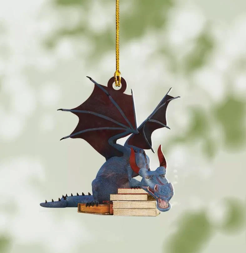 Dragon And Book Light Christmas Ornament Book Lovers Gift Reading Room Decor