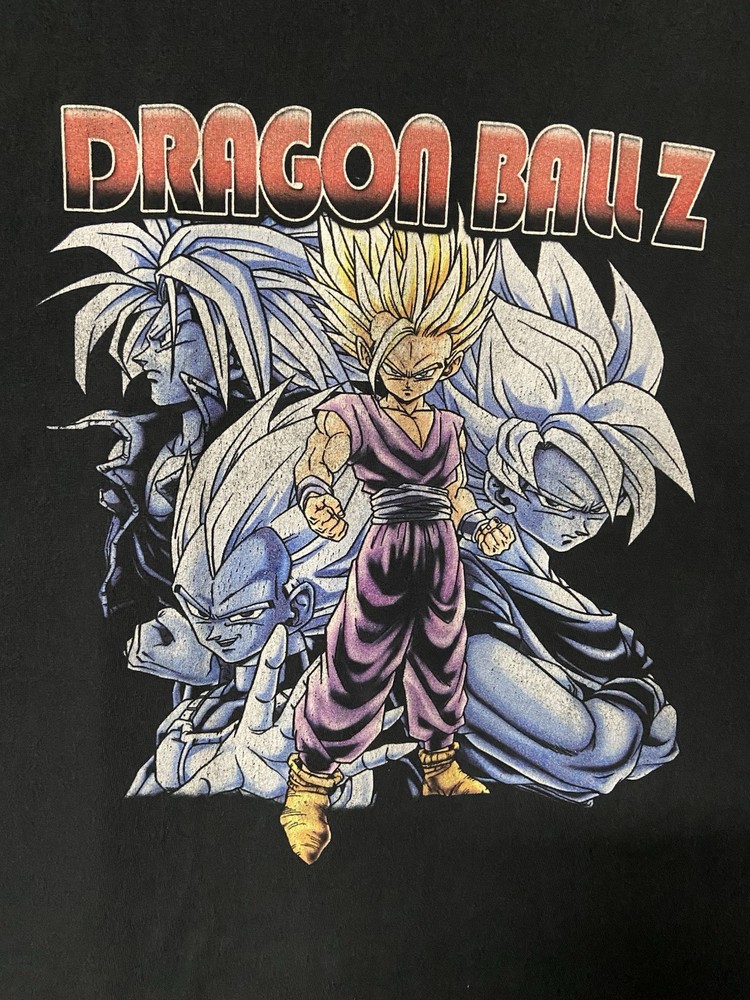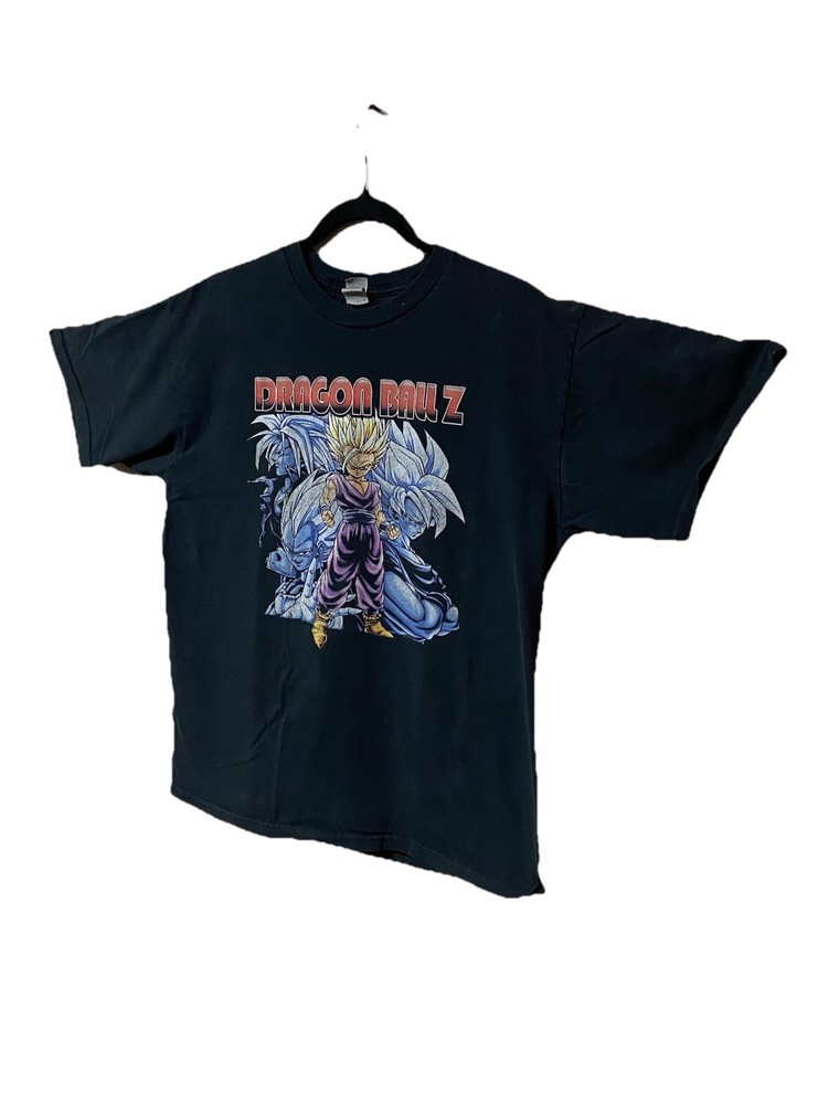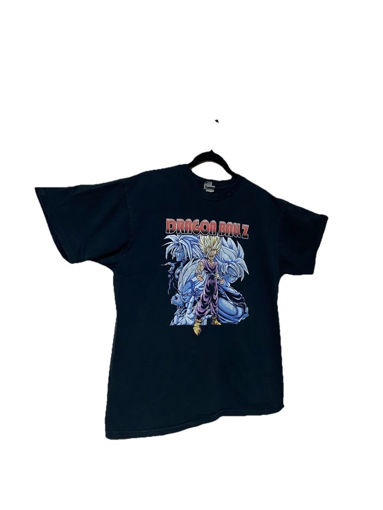 This Dragon Ball Z black T-shirt is a must-have for any anime fan. Featuring a graphic print of Gohan, Goku, Vegeta, and Trunks, this relaxed-fit tee is perfect for all seasons. Made of cotton, it has a crew neck and short sleeves, making it comfortable to wear. The T-shirt is available in size L and is suitable for men of all ages. It is a great addition to any wardrobe and can be worn on a casual day out or to a game. Get your hands on this Dragon Ball Z T-shirt today and show off your love for the anime.
