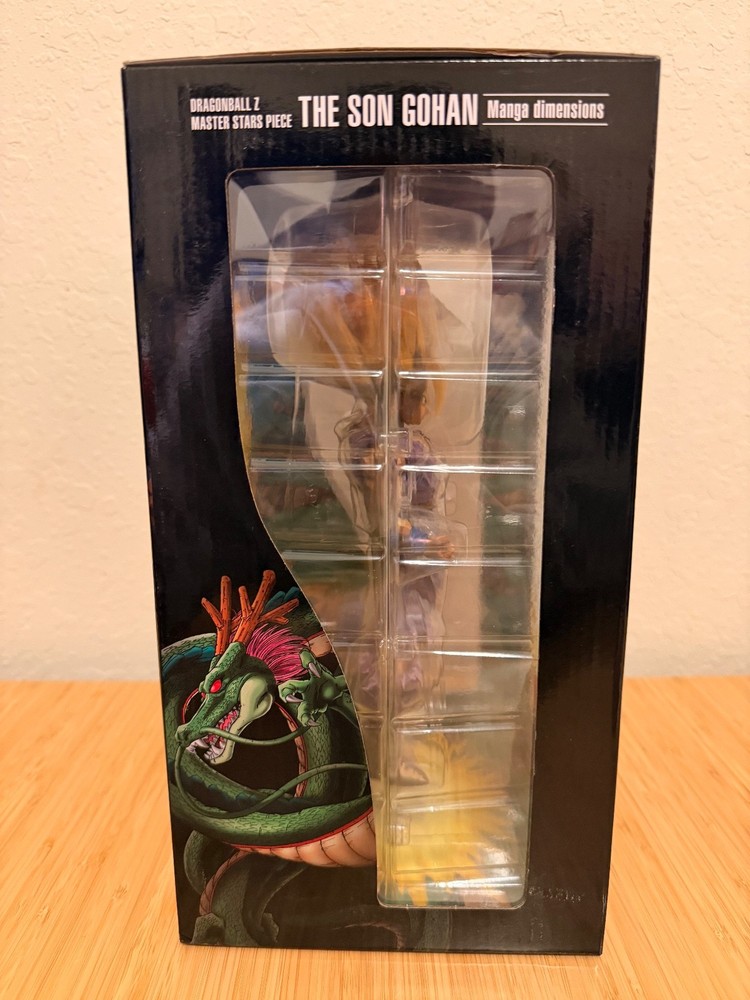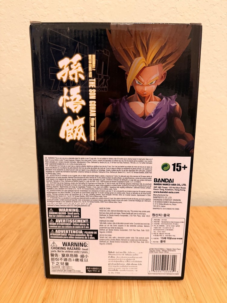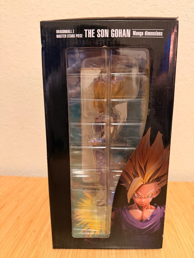 The product is a Dragon Ball Z Master Stars Piece featuring The Son Gohan from the manga dimensions. Manufactured by BANPRESTO in Japan in 2016, this plastic collectible showcases Gohan in a purple color scheme, staying true to the anime and manga franchise. Perfect for fans of Dragon Ball Z and collectors of animation merchandise, this piece captures the essence of the beloved character in intricate detail, making it a valuable addition to any collection.