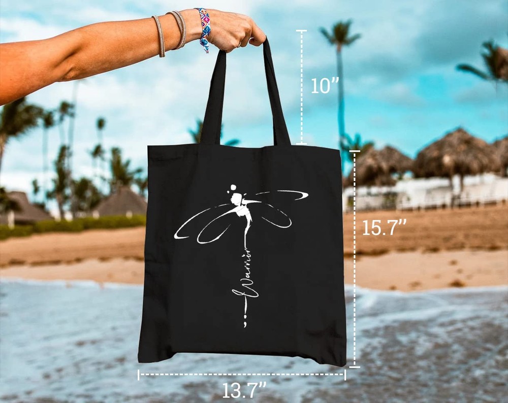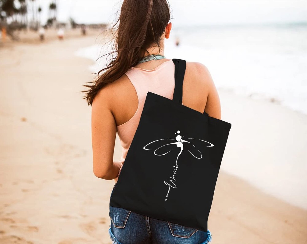 Description Aesthetic dragonfly warrior reusable large canvas tote women bag Reusable durable canvas tote shopping bag is made of 100% cotton,Lightweight but heavy-duty canvas shoulder bags with haddles Measuring 13.7 x 15.7 inches,cross-stitched shoulder handles,this canvas bags can hold up to 15kg,It can also hold a lot of groceries, like food,vegetables,fruits,milk and other stuffs Package included: 1 * Washable Reusable Grocery Canvas Shoulder bag Occasions:Perfect for work,beach,shopping,gym and yoga,travel,groceries,farmers market running and so on Gift Idea:The aesthetic dragonfly warrior design is suitable for Friends Women and Travelers.Perfect for Birthday gifts,Christmas gifts,New Year gifts,Valentine's day,Mother's Day gifts (THIS ITEM IS NOT INTENDED FOR USE BY CHILDREN 12 AND UNDER.)