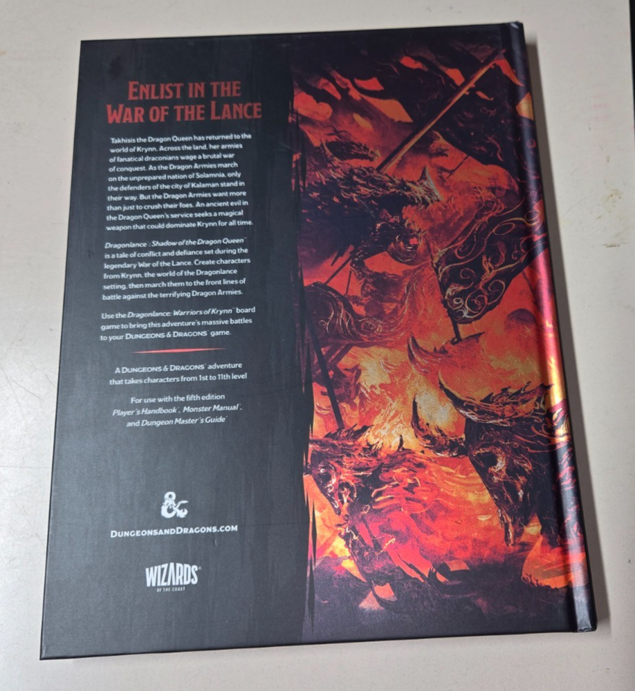 The Dragonlance Shadow of the Dragon Queen Dungeons & Dragons hardcover book is a fictional narrative set in the fantasy world of Dragonlance, written by Wizards of the Coast. This 2nd edition book features illustrations by Aru-Mor and Ru-Mor, providing readers with a visually immersive experience. The hardcover format adds durability to this English language book, making it a valuable addition to any fan's collection. With a focus on role-playing and action-packed adventures, this book is sure to captivate readers with its epic fantasy narrative.