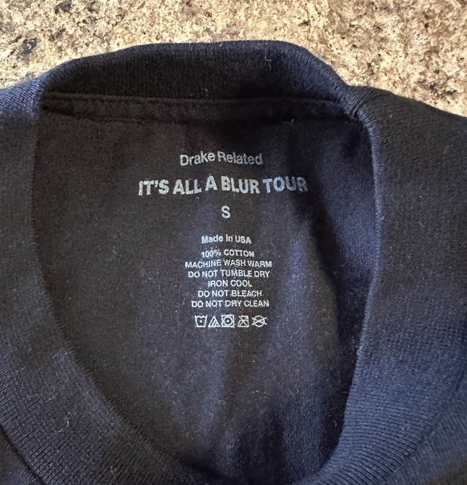 The product is a size small official merch shirt for the Drake Its All A Blur Tour in 2023. The shirt is black in color and designed specifically for men. This t-shirt is a must-have for fans of Drake looking to represent their favorite artist during the tour. Made with high quality materials, this shirt is a stylish and comfortable addition to any music enthusiast's wardrobe.