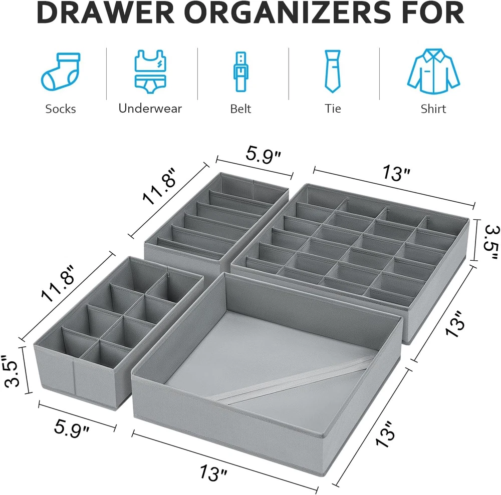 Menu Other Items Feedbacks About Us Contact Us Add To Favorites Drawer Organizer Clothes - Foldable Underwear Organizer and Sock Organizer, Sock Drawer Organizer Divider Fabric Dresser Drawer Organizer for Socks, Bra, Underwear, Tie, 4 Pack, Grey 【Versatile & Efficient】Our clothing drawer organizer is perfect for keeping your socks, underwear, ties, t-shirts, lingerie, belts, neatly organized in your drawers. Say goodbye to messy drawers and easily find what you need with these multifunctional dresser organizer 【Multiple Sets】Our set includes a large empty storage bins and a 24-grid sock organizer measuring 12.9x12.9x3.5 inches, larger than similar products. Additionally, we offer 8-grid tie organizer and 6-grid underwear organizers measuring 11.8x5.9x3.5 inches. Perfect for any space, like your wardrobe, shelves, drawers and bedroom 【Foldable & Easy to Install】Our drawer organizers for clothing features a foldable design with a zipper on the bottom, making it incredibly easy to assemble. When not in use, the closet organizers can be folded up and easily stored without taking up much space 【Premium Material】Made from high-quality non-woven fabric, our dresser drawer organizers are built to last. the clothing organizer is supported by sturdy boards on four sides, preventing deformation and ensuring long-term durability 【Fine Stitching & Reinforced Edges】We pay attention to every detail, ensuring our sock drawer organizer divider is finely stitched and reinforced along the edges. This design provides extra strength and prevents tearing, guaranteeing its durability over time Product Description A perfect combination 4 Set will keep your bedroom neat and tidy. Bra storage Underwear storage box Socks storage box Tie storage box The bottom zipper design provides stronger support for the entire product. Open storage Placing the drawer storage box under an open clothes rack can provide an additional storage area. Make the room more spacious and convenient for you to pick up clothes. Wardrobe storage The combination of wardrobe and storage box is a perfect match, and partitioned storage can make drawers and wardrobes more tidy. Drawer storage Placing the storage box in the drawer can better partition the products in the drawer and maintain cleanliness. Don't worry about the drawers being messy anymore. Keep clothes clean and tidy Dividing different clothes into different areas is beneficial for picking them up. Item Specification Item model number organizer Number of Items 4 Country of Origin China Batteries Included? No Batteries Required? No Finish no Material nonwoven Package Type Standard Packaging Finish Type no Specific Uses For Product Organize items Item Package Quantity 1 Mounting Type assembly and installation Item Weight 0.5 Kilograms Item Weight 1.1 pounds Special Features Foldable Special Feature Foldable Number of Compartments 24 Unit Count 4.0 Count Color Grey Shape Rectangular Included Components Set of drawer organizers Product Dimensions 11"D x 11"W x 3"H Size 4 Pack Dimensions Shipping Returns Additional Info Product Dimensions: 11.0 "h x 11.0 "h x 3.0 "h. Weight: 1.1 lb Fast shipping is very important for us. Our standard shipping service is FREE. Your order will be shipped within 1-3 business days upon full payment received. Most items are delivered within 3-5 business days, however, please allow 3-10 business days. We are shipping only to USA. We only ship to the confirmed Paypal address. We reserve the right to cancel any order for any reason at any time. We are not responsible for undeliverable addresses. We offer a 30 day return policy from checkout winning date. Your satisfaction is guaranteed! If for any reason you are unhappy with your item, just return it within 30 days for a full refund, minus shipping cost. Please contact us prior to initiating a return so that we can issue you a refund authorization. Items defective upon receipt must be packaged in their retail packaging as if new and returned with a detailed description of the problem. Return shipping fees are not refundable. We reserve the right to decline any returns if the above guidelines are not followed. All of our items, unless otherwise stated, will only run on 120 volts. Please check to make sure your country complies with these specifications. If you have a problem or question regarding your transaction please contact us before leaving any type of feedback. We will work with you to resolve any problem you may have.