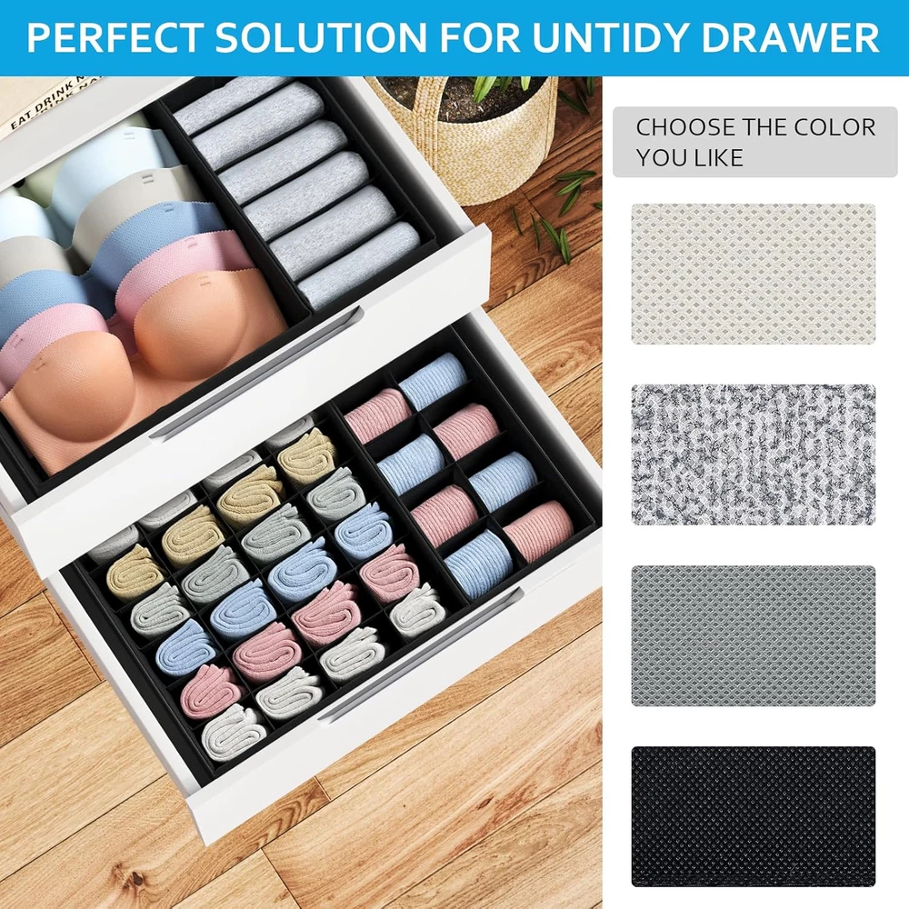 Menu Other Items Feedbacks About Us Contact Us Add To Favorites Drawer Organizers for Clothing, Sock Organizer for Dresser Drawer Organizer, Foldable Underwear Organizer for Drawer, Panty Clothing Closet Organizers, Black, Set of 4 【Versatile and Efficient】Our drawer organizer clothes is designed organize socks, ties, scarves, panties, shirts, and lingerie. With everything neatly arranged, the drawer organizer for clothing making it easier and faster to find what you need 【Multiple Combinations】Our 4-piece set includes a large empty bra organizer and a 24-grid sock drawer organizer (12.9*12.9*3.5") that surpass similar products in size. We offer an 8-grid as well as a 6-grid fabric drawer organizer (11.8*5.9*3.5") . These versatile options cater to a wide range of storage needs 【Foldable & Easy to Install】Our sock underwear organizer features a user-friendly foldable design with a bottom zipper. Installing it is a breeze, and when not in use, the dresser drawer organizer can be folded for compact storage, saving you space 【Premium Fabric】Made from high-quality non-woven fabric, our storag bins offers exceptional durability. The carodboards on four sides ensures clothing drawer dividers maintains its shape and remains resistant to deformation 【Superior Craftsmanship】The precision stitching and reinforced edges of dress drawer organizer enhance its strength, making it tear-resistant. Our nursery organizer will withstand daily wear and tear, providing you with reliable storage for years to come Product Description A perfect combination 4 Set will keep your bedroom neat and tidy. Bra storage box Underwear storage box Socks storage box Tie storage box The bottom zipper design provides stronger support for the entire product. Open storage Placing the drawer storage box under an open clothes rack can provide an additional storage area. Make the room more spacious and convenient for you to pick up clothes. Wardrobe storage The combination of wardrobe and storage box is a perfect match, and partitioned storage can make drawers and wardrobes more tidy. Drawer storage Placing the storage box in the drawer can better partition the products in the drawer and maintain cleanliness. Don't worry about the drawers being messy anymore. Keep clothes clean and tidy Dividing different clothes into different areas is beneficial for picking them up. Item Specification Item Shape Rectangular Number of Compartments 38 Unit Count 4.0 Count Number of Compartments 38 Number of Items 4 Mounting Type Insert Mount Unit Count 4.0 Count Color Black Material nonwoven Specific Uses For Product storage Item Weight 0.5 Kilograms Product Dimensions 11"D x 11"W x 3"H Shape Rectangular Package Type FFP Mounting Type Insert Mount Item Weight 0.5 Kilograms Size 4 Pack Special Feature Compact,Foldable Item Dimensions D x W x H 11"D x 11"W x 3"H Features Compact,Foldable Dimensions Shipping Returns Additional Info Product Dimensions: 11.0 "h x 11.0 "h x 3.0 "h. Weight: 0.5 kg Fast shipping is very important for us. Our standard shipping service is FREE. Your order will be shipped within 1-3 business days upon full payment received. Most items are delivered within 3-5 business days, however, please allow 3-10 business days. We are shipping only to USA. We only ship to the confirmed Paypal address. We reserve the right to cancel any order for any reason at any time. We are not responsible for undeliverable addresses. We offer a 30 day return policy from checkout winning date. Your satisfaction is guaranteed! If for any reason you are unhappy with your item, just return it within 30 days for a full refund, minus shipping cost. Please contact us prior to initiating a return so that we can issue you a refund authorization. Items defective upon receipt must be packaged in their retail packaging as if new and returned with a detailed description of the problem. Return shipping fees are not refundable. We reserve the right to decline any returns if the above guidelines are not followed. All of our items, unless otherwise stated, will only run on 120 volts. Please check to make sure your country complies with these specifications. If you have a problem or question regarding your transaction please contact us before leaving any type of feedback. We will work with you to resolve any problem you may have.