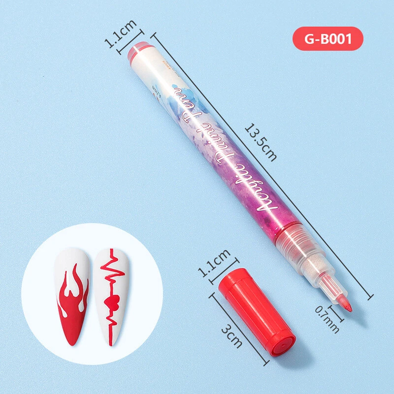 Specification: Quantity: 1 Pc Color: As the pictures show Package Contents: 1 Pc Nail Art Pen Feature: brand new and high quality Use for fine nail art work For drawing french nail art,line,wave patterns, etc. Perfect for both professional use and personal use! How to use: 1.Pen point is colourless when receiving the goods.(Normal) 2.Push the pen point several times,wait for several seconds and then the color wiill come out.(Important) 3.Apply the color gel on your nail and cure. 4.If there is floating gel on the nail surface, please wipe it off. 5.Draw pattern you want on your nail and wait it dry naturally. 6.Seal with top coat and cure. 7.Cover the cap immediately. Gentle Tips: 1. If redness or other signs of adverse reaction occur, discontinue use immediately.(show the label whenever possible) 2. Keep tightly sealed. Keep out of sunlight. Keep out of reach of children. On Nov 9, 2024 at 02:32:08 PST, seller added the following information: