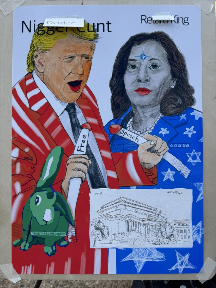 Drawing of The National Archives On A Print Of Trump And Kamala