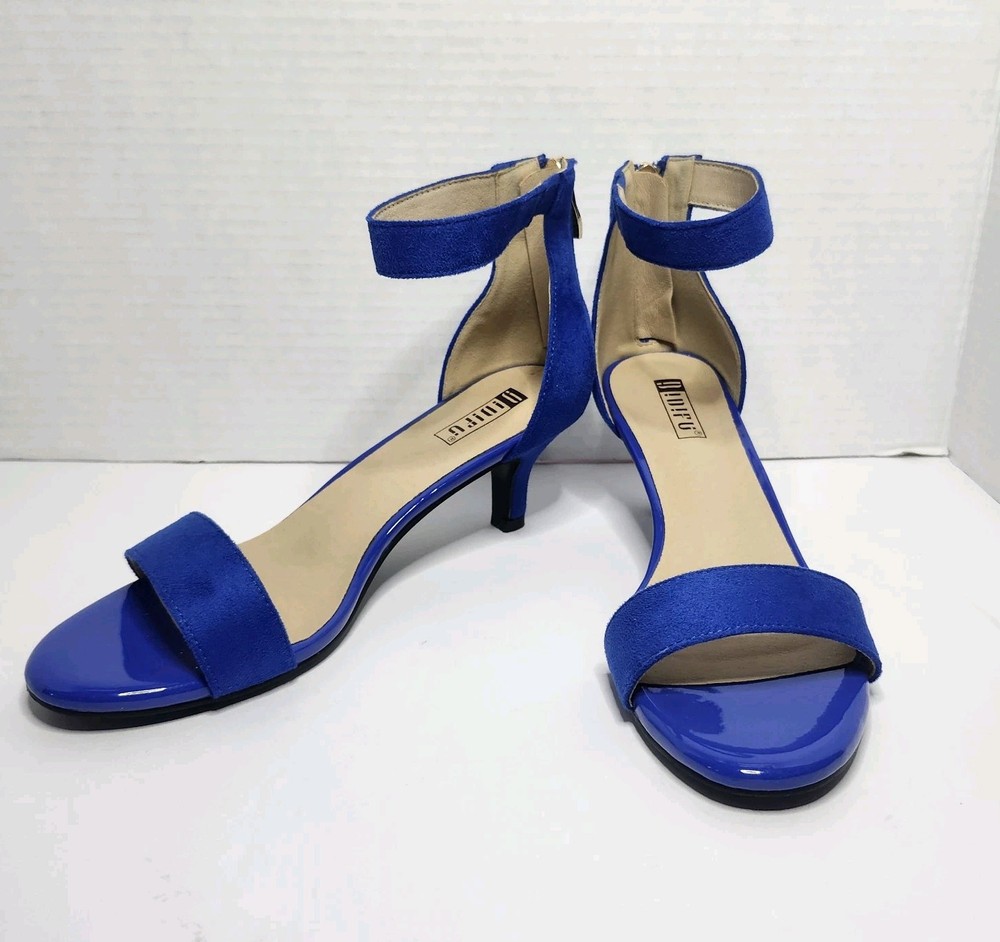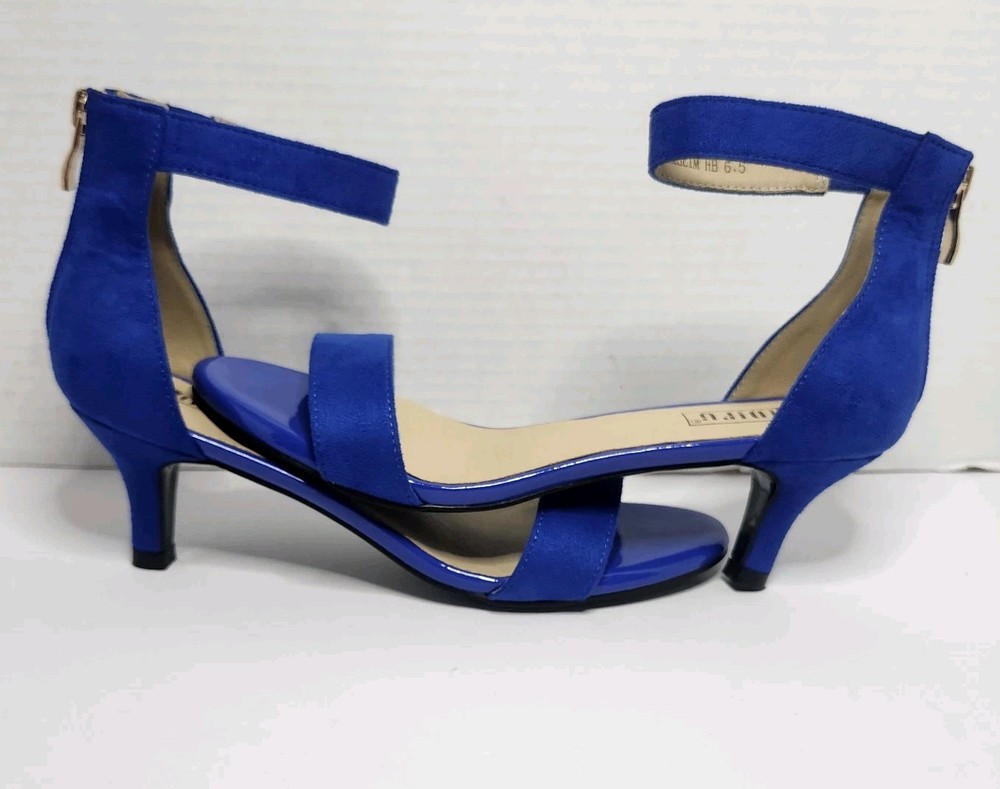 Dress up your feet with these stylish and comfortable Dream Pairs Kitten Heel Open Toe Ankle Strap pumps. The blue suede upper material and foam insole provide a cushiony feel, while the rubber outsole offers stability. These versatile shoes are perfect for any occasion, from weddings to workwear. The ankle strap with zipper accent adds a touch of sophistication, making these pumps suitable for clubwear and formal events. The Dream Pairs pumps have a mid heel height of 2-2.9 inches, making them comfortable for all-day wear. The open toe design and solid pattern make these shoes a great addition to any wardrobe. These pumps are available in women's size 6.5 and are suitable for summer, fall, and spring seasons. Add these gorgeous Dream Pairs pumps to your shoe collection today!