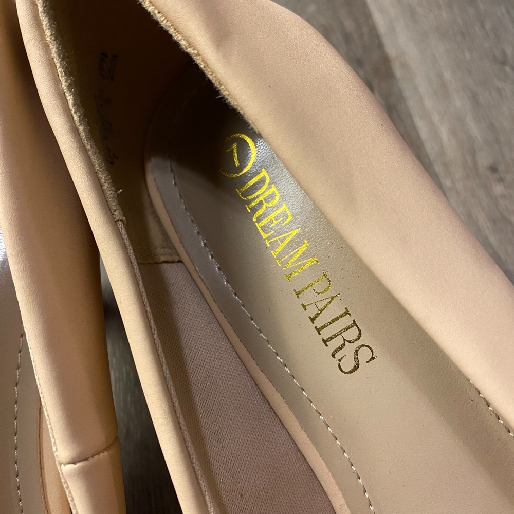 Dream Pairs Women's Shoe Size 7 Nude Heels with Round Toe Decent Condition, from a foot away they look great but if you look up close you can see some flaws like the mark in photo 7, and the dot in photo 8