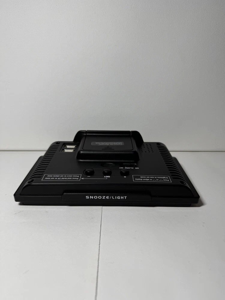 Looking for a reliable and functional alarm clock for your bedroom? Look no further than the DreamSky Alarm Clock! This digital clock features battery backup, so you can rest assured that your alarm will always go off, even in the event of a power outage. The sleek black design is perfect for any bedroom decor, and the easy-to-read digital display ensures that you can see the time from anywhere in the room. Comes as shown in pictures. No batteries included.