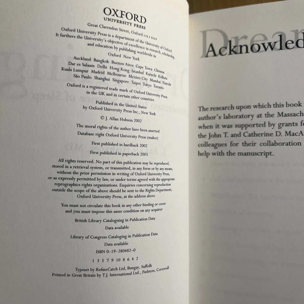 "Dreaming: An Introduction to the Science of Sleep" by J. Allan Hobson is an insightful non-fiction textbook published by Oxford University Press in 2003. This book delves into the fascinating topic of sleep science, offering a comprehensive look at the mysteries of dreaming. Written in English, this paperback is suitable for young adults and adults interested in the mind, body, and spirit genre. With a focus on the science behind our dreams, this book is a valuable addition to any reader's collection." Thank you for purchasing from A-ZCollective