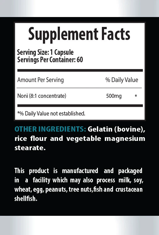 Noni Extract 500 mg Immune System Booster, Help Improve Memory, Digestive Stimulant, Excellent Antioxidant (1 Bottle, 60 Capsules) (Manufactured in USA) What is Noni? Noni is a small evergreen tree in the Pacific Islands, Southeast Asia, Australia, and India that often grows among lava flows. Noni is being widely recognized for its fruit medicinal and regenerative value in the skin care market. Today, noni fruit, leaves, flowers, stems, bark, and roots are still used to make medicine for a long list of ailments. It is also used as a moisturizer and to reduce signs of aging. Different parts of the noni plant are also marketed as powerful ingredients in many products or as products on their own. Noni fruit oil is used in shampoo and conditioner, other products available are capsules, deodorant, noni body powder, hand and facial soap, noni foot and body lotion, juice, fruit extracts, eye cream and rejuvenating face masks. Another product available is noni collagen which is supposed to be used as a maintaining product for cosmetics thus improving products’ effectiveness. It is intended to replace some harmful chemical additives. The tree’s dried leave’s are marketed as tea for their medicinal and cosmetic purposes. Noni juice contains a variety of antioxidants which are very useful because they prevent free radicals from damaging cells. Noni - How Does It Work? Noni contains many substances, including potassium. Some of these substances help repair damaged cells in the body, activate the immune system, and have other activities. Noni - Immune System Booster: Noni is considered one of the most nutritious fruits. Noni activates macrophages and strengthens the immune system, which then produces more lymphocytes. It also contains antibacterial agents that fight infectious bacteria, including Staphylococcus aureus and Escherichia coli. Noni Help Improve Memory: Noni helps your brain stay healthier, and plaque does not build up in arteries feeding the brain, keeping it properly oxygenated. Noni As Digestive Stimulant: Noni juice has traditionally been used as a laxative. Noni As Antidepressant/Sedative: Noni stimulates seratonin and melatonin, two very important hormones. Seratonin affects mood, emotions, and sleep; imbalance in levels of serotonin may contribute to depression. Melatonin regulates the Circadian rhythm, which helps you sleep; keeping this regular will help you get a good night’s rest, also improving your mood. Cholesterol: Noni prevents the absorption of LDL cholesterol, thus reducing plaque in arteries, keeping you healthy and alive longer. Constipations: Noni is high in soluble fiber, which helps ease the strain on your intestines and softens stool. Also has necessary vitamins and minerals to keep your intestines healthy. Antibacterial, Antifungal And Antiparasitic: With the presence of active compounds like anthraquinones, scopoletin and terpenes, Noni is effective against bacteria and fungus. Noni Is An Excellent Antioxidant: Noni is an excellent antioxidant. This refers to the activity of numerous vitamins, minerals, and other phytochemicals to protect against the damaging effects of highly reactive molecules known as free radicals. Free radicals have the ability to chemically react with and damage many structures in the body. Nutrition: Noni leaf is rich in beneficial photonutrients, bioflavinoids, enzymes, vitamins, minerals, and has all 20 amino acids, including the nine essential amino acids necessary to form a complete protein. Serving Size: 1 Capsule Servings Per Container: 60 Supplement Facts: Noni (8:1 concentrate) 500mg OTHER INGREDIENTS: Gelatin (bovine), rice flour and vegetable magnesium stearate. SUGGESTED USE: 1 (One) capsule taken 1 to 2 times daily preferably with meals or as directed by a healthcare professional Dried White Mulberry - NONI EXTRACT 500mg - Stimulates Melatonin 1B CAUTION: Do not exceed recommended dose. Pregnant or nursing mothers, children under the age of 18 and individuals with a known medical condition should consult a physician before using this or any dietary supplement. *These statements have not been evaluated by the Food and Drug Administration. This product is not intended to diagnose, treat, cure or prevent any disease. Feedback From Buyer Date/time GREAT ITEM, GREAT SELLER, FAST SHIPPING, THANK YOU!!! d**********0 ( 81 ) 2016-11-22 21:53:38 Very fast shipper u****6 ( 227 ) 2016-11-22 21:17:41 Fast shipping, great item, Thanks!! b*************6 ( 253 ) 2016-11-22 18:52:18 Excellent transaction. Thank you. d************2 ( 952 ) 2016-11-22 17:53:40 Thank you 0********3 ( 335 ) 2016-11-22 15:20:54 Excellent e**********1 ( 11 ) 2016-11-22 13:37:43 Good c**********r ( 91 ) 2016-11-22 13:09:10 awesome thank you b*********7 ( 401 ) 2016-11-22 10:40:40 Ok transaction c***********1 ( 97 ) 2016-11-22 06:40:19 Good and fast j********z ( 54 ) 2016-11-22 05:57:48 works great and fast ship. c*********l ( 322 ) 2016-11-22 02:05:45 Great product, shipped very fast!! g***6 ( 646 ) 2016-11-22 02:03:50 Great price. Great seller. Thank you!!! o*********1 ( 579 ) 2016-11-22 01:43:31 Fast shipment thank so much! l*****3 ( 997 ) 2016-11-22 00:00:35 great price and product AAAAA+++++ e*****r ( 240 ) 2016-11-22 00:00:34 perfect as usual , a pleasure dealing with you, the best n***************s ( 217 ) 2016-11-21 23:45:15 Nice p**********2 ( 539 ) 2016-11-21 21:15:09 Excelente vendedor. w******h ( 59 ) 2016-11-21 20:39:49 good item ..description s**********y ( 148 ) 2016-11-21 20:28:31 Great Seller - highly recommend. p**********1 ( 42 ) 2016-11-21 20:16:02 Excellentl service!!!!!! Highly recommended!!!!! k*****3 ( 546 ) 2016-11-21 20:03:46 Thanks l*******y ( 214 ) 2016-11-21 19:20:48 Quick and simple Great product a*******3 ( 166 ) 2016-11-21 15:50:44 fine transaction m*******y ( 849 ) 2016-11-21 10:01:09 Good seller a*******8 ( 70 ) 2016-11-21 00:38:17 GREAT QUALITY PRODUCT