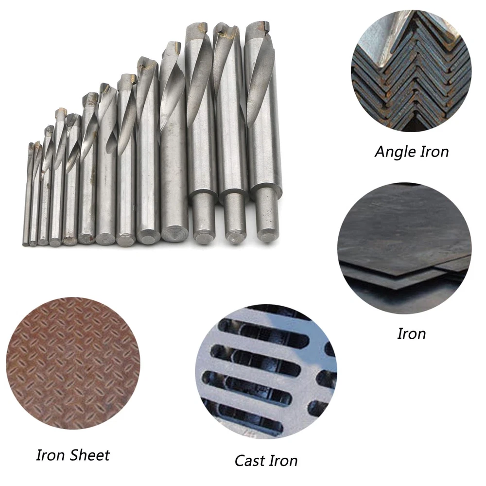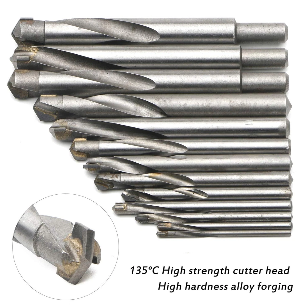Package includes: 13 drill bits, respectively: 3/4/5/6/7/8/9/10/11/12/13.5/14/15 mm This set of drill bit loses its hardness as a cutting tool once the tip starts to heat up. Using the hss drill at lower speeds with coolant or lubricant, you can successfully drill a large number of holes in metal. (continue to add water for cooling while drilling) Our drill bits with low tungsten content are not suitable for stainless steel, aluminium alloys, coloured steel and other hard metals, but are suitable for a wide range of aluminium alloys, iron, copper, brass, wood, plastics and other metal materials for hand drills, bench drills and more Our drill bits bits are available in 13 different sizes to meet the various needs of your work, no need to buy other sizes separately, set of drill bits can meet most of your drilling needs. Carbide drill bits are mainly used for pig iron and cast iron Carbide drill bits have high toughness, abrasion resistance and hardness for high speed cutting, with a large piece of carbide at the end of the drill, allowing you to easily complete your work at high speeds
