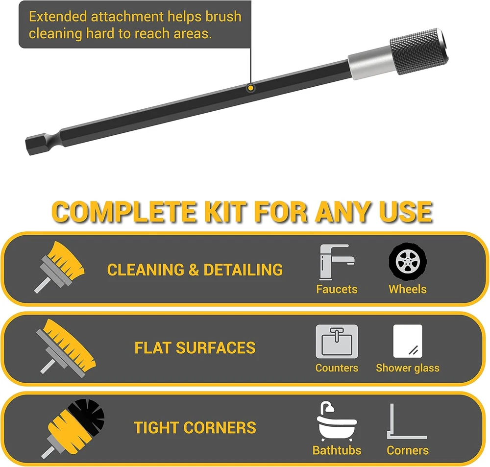 Store New Arrivals Add to Favorite View Feedback Contact Drill Brush Attachment Set - Power Scrubber Tile and Grout Tool - Use for Kitchen, Shower, Bathtub and Floor Surface - All Purpose Household Cleaning Kit Includes 3 Brushes with a Bit Extender Description Unit Count 3.0 Count Number of Items 3 Color Gray, Yellow, Black Material Plastic Handle Material Plastic Specific Uses For Product Bathroom, Shower, Bathtub, Floor, Grout Item Weight 1 pounds Shape Round Surface Recommendation Floor,Shower,Tile Included Components Attachment Special Feature Durable Package Dimensions 7.41 x 4.61 x 4.1 inches ULTIMATE CLEANING POWER: This set is ideal for you if you’re serious about keeping your home and car spotless. When you’re sick of scrubbing manually, grab these cleaning attachments for your power drill and clean quickly and effectively. ANY DRILL WILL DO: You can use any scrubber for your drill with any type of household drill. Simply attach and transform your standard drill into a power-cleaning machine. Suitable for most surfaces, your car boot and some interior, kitchen, bathroom - anywhere with tough dirt. KEEP YOUR FLOORS SPOTLESS: Pets and kids tracking mud in again? Never fear dirt again - insert your drill brush scrub attachment and get to cleaning - quick and easy. This cleaning drill brush set helps keep your house cleaner with less effort. HIGH QUALITY & DURABLE: Our cleaning attachments for the power drill are made from only the highest quality materials. Which means you can keep your house cleaner for longer without worry about perishing drill brushes. Say No to Manual Labor Aren’t you sick of scrubbing away at showers, floors, pots & pans and other places which acquire tough dirt? Then isn’t it time you made things way easier? These drill brushes will make cleaning a breeze by effortlessly cutting through any grime and muck - saving you time and effort. Clean Your Floors, Bathroom and So Much More Armed with these drill brushes, you’ll be able to clean anywhere. Make your shower sparkle, your tub glimmer, your car wheels shine, or your pots spotless. One kit, one drill (not included), effortless cleaning. Made from Tough Stuff These brushes are made from high-quality materials - and they’re built to last. They’re capable of cleaning even the toughest of dirt and survive, so your home and car can stay cleaner for longer. No More Scrubbers and Scourers Do away with the old scrubbers and scourers that need so much effort to clean. These cleaning brushes replace those items - even in harder to reach places, thanks to the extender. Clean like never before - armed with nothing more than a drill and our brush set. Your Satisfaction is Our Priority We want to make your life easier with these brushes. So if you’re not 100% satisfied with your purchase, we’ll you - or replace your set within 30 days. Because we know what it is to clean for hours on end and still feel like you’re getting nowhere. No more... Get These Drill Brushes Today and Say Goodbye to Manual Labor ABOUT US We offer the best prices around on high quality products. Our E-store includes media such as books, movies, music and games while offering electronics, toys, sporting apparel, clothing, tools, general home, garden items and more. SHIPPING We are always working hard to ensure your package arrives as soon as possible. Please understand that some factors like weather, high postal traffic, and the performance of shipping companies are outside of our control. We offer free shipping to the lower 48 states and ship within 2 business days of payment, usually sooner. We do not accept P.O. Boxes. Please provide a physical address. For shipping outside of the continental USA, we only use eBay's Global Shipping Program.The item is shipped to KY and then sent to the rest of the world. International customers are responsible for all duties and taxes. Continue to check out in order to calculate costs for shipping the item to your country. Messages regarding eBay's Global Shipping Program MUST be directed at eBay EXCLUSIVELY. RETURNS We offer a 30-Day Return Policy on items which you are not completely satisfied with. You have the option for a full-refund or an exchange of the item. No returns are available on items shipped outside of the USA. PAYMENT We accept PayPal. CONTACT US This page content is yet to come Please ad us to your favorite seller and visit again later Thank You CUSTOMER SATISFACTION We try our very best to make sure every customer is completely satisfied. If there's a problem, message us! We're happy to help. WE ACCEPT Copyright © 2021 AutoDS. | All Rights Reserved