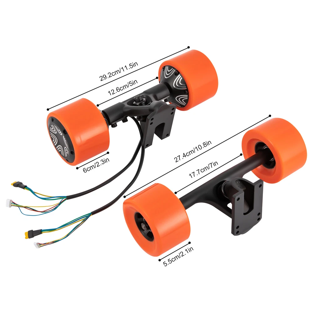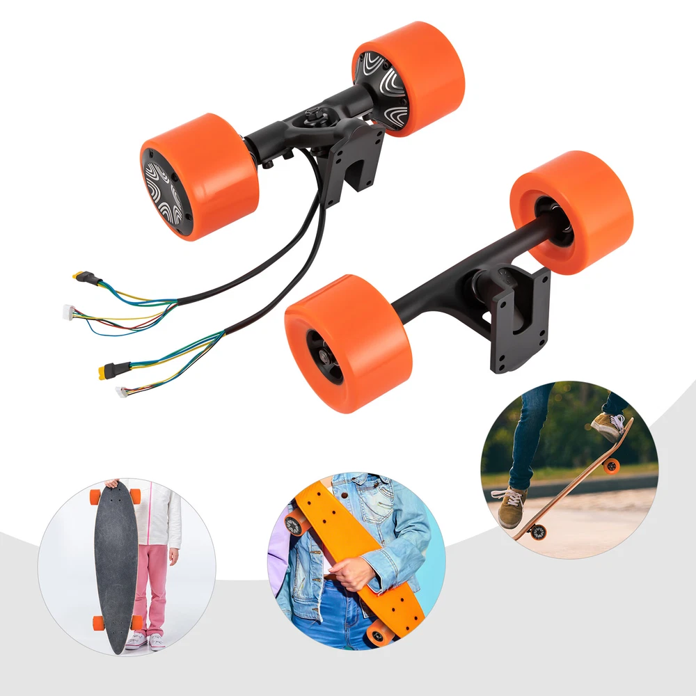 Details Solid Screw Structure: Multiple solid screws connect all parts of the product more closely to ensure smooth operation. Good Connectors: They make it easier to plug in your skateboard. Round Edges: Rounded, burr-free edges are not only more comfortable to touch but also care for your skin. Application It is suitable for the skateboard industry, skateboarders, etc. and it can be mounted on long or short skateboards within 35.43 inches. Specifications Color: Orange/Black Material: PU, Iron, and Aluminum Alloy Assembly Required: Yes Mount Type: Skateboard-mounted Number of Pieces: 2 Rated Voltage: 36VDC Rated Current: 9A Rated Power: 250W Rated Torque: > 1.5N.m Efficiency: ≥80% Maximum Torque: 4.5N.m Package Included 2* Drive Scooter Hub Motors 💖 welcome to aaertu~💖 Description Description If you are a skateboarder, our excellent dual motor set for electric skateboards is worthy of your investment. Crafted from high-quality PU wheels and a powerful 250W brushless motor, you can indulge in the thrill of skateboarding while also taking advantage of its practical uses as a transportation for shopping, or picking up delivery. It is the ideal choice for your on-the-go needs! Key Features Selected Materials: The item is made of high-quality PU wheels, iron, and aluminum alloy , making it solid and durable without frequent replacement. Speed and Passion: The maximum speed of 15.525mph, maximum climb angle of 20°, and range of up to 14.3 miles allow you to enjoy the speed and passion that skateboarding brings! Moreover, the large torque(max. 4.5N.m) brings greater comfort and flexibility during turning. Powerful Motor: The 250-watt brushless motor with 2200rpm speed runs at a low noise of about 55db and ensures high efficiency( over 80%), allowing you to have a good skating experience. High Safety: The IP44 waterproof rating and Class E insulation allow it to be used in rainy weather and increase your safety. High Load Capacity: Thanks to its high-quality materials and four-wheeled structure, the maximum load capacity reaches 220.46 lbs, allowing you to skateboard happily! Easy to Clean : Thanks to the simple structure and smooth surface, when dust accumulates on the surface, you only need to wipe it clean with a towel. Simple Installation: All the parts of the product are already assembled, you just need to plug the connecting cable into the skateboard jack and use it! Ideal Gift: Thanks to its practicality and powerful functions, you can give it as a holiday gift to your skateboarding-loving friends. Protective Package: We use foam to pack our products to protect them as much as possible from damage during transit. Customer Service: We aim to provide quality products and services. If you have any problems, please feel free to contact us. We will reply and solve the problem for you as soon as possible. Details Solid Screw Structure: Multiple solid screws connect all parts of the product more closely to ensure smooth operation. Good Connectors: They make it easier to plug in your skateboard. Round Edges: Rounded, burr-free edges are not only more comfortable to touch but also care for your skin. Application It is suitable for the skateboard industry, skateboarders, etc. and it can be mounted on long or short skateboards within 35.43 inches. Specifications Color: Orange/Black Material: PU, Iron, and Aluminum Alloy Assembly Required: Yes Mount Type: Skateboard -mounted Number of Pieces: 2 Rated Voltage: 36VDC Rated Current: 9A Rated Power: 250W Rated Torque: > 1.5N.m Efficiency: ≥80% Maximum Torque: 4.5N.m Test Conditions: Number of Motor Poles: 10 Pairs of Poles Ambient Condition: 20±10°C/68±50°F, 65%±5% Operating Environment: -10C°-35C°/14-95°F No-load Current: ≤1.2A No-load Speed: 2200RPM ± 5% Waterproof Grade: IP44 Insulation Class: E Motor Hall: SF41/Optional No-load Noise: 55db Brake: Electronic Brake/Electromagnetic Brake Maximum Load Capacity: 100kg/220.46lbs Maximum Speed: 25km/h/15.525mph Endurance: 15/23km, 9.32/14.3miles Motor: Brushless Motor Battery: 36V, 4.4Ah/6.6Ah/7.8AH(Not Included) Charging Time: 2~4 hours Charging Voltage: AC 110-240V, 50-60Hz Maximum Climbing Angle: 20° Gross Weight: 4.5kg/9.92lbs Adapted Skateboard Length: Within 90cm/35.43in Front Wheel Width: 5.5cm/2.17in Front Wheel Linkage Length: 17.78cm/7in Overall Length of Front Wheel: 27.43cm/10.8inch Rear Wheel Width: 6cm/2.36in Rear Wheel Linkage Length: 12.7cm/5inch Rear Wheel Overall Length: 29.21cm/11.5inch Wheel Diameter: 9cm/3.54inch Package Size: 32.5*12.5*10.5cm/12.8*4.92*4.13inch Package Included 2* Drive Scooter Hub Motors Notes Please note that this product does not include a skateboard, battery, controller, or remote control . Please note that the heavier you are, the slower you will travel. Please allow the slight color difference caused by the shooting light and 1-3 cm error due to manual measurement, and make sure you do not mind before ordering. Payment Delivery details Terms of sales About us Contact us Payment We accept ebay payment 。 Fees such as import duties, taxes are not included in the item price or shipping costs. These charges are the buyer's responsibility. Delivery details Shipping: 2-9 working days to: USA Terms of sales We maintain high standards of excellence and strive for hundred percent customer satisfaction. Feedback is very important to us. We hope that you contact us immediately before you give neutral or negative feedback, so that we can address your concerns. It is impossible to address issues if we do not know about them! About us Your satis faction is our ultimate goal. We work hard to earn your trust and future business. Our certified technicians have tested each item before shipping. The unit comes with 1 year limited warranty on all manufacturing defects. a) If you receive a defective item, you may return it or ask for a discount. Please contact us within 14 days after you receive the package. b) What you returned must be intact and in its orig
