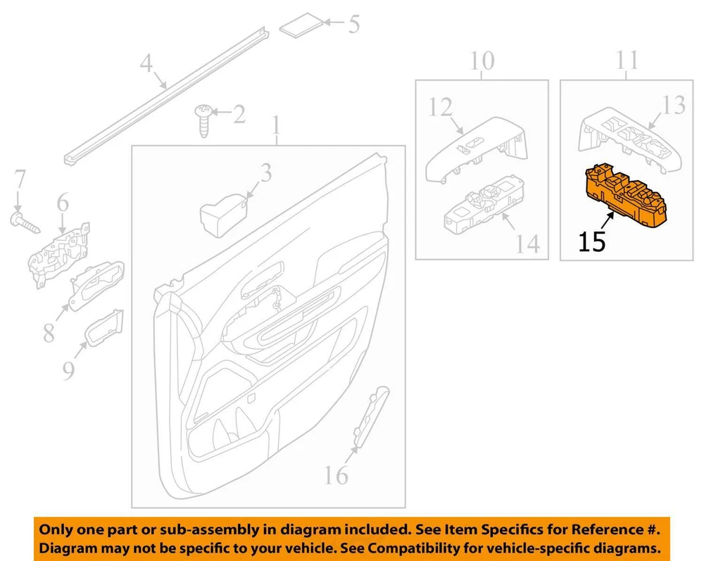 Store Home About Us Customer Resources Feedback Contact Us Driver Left Front Door Switch 93571A9300 Fits 15-18 Sedona 2169845 Free Shipping - 90 Day Warranty - Est. 1923 Description Restore Your Ride with our Genuine Door Electric Switch Discover Quality OEM and Reliability at Schram Auto Parts Verify Fitment: Ensure a Perfect Match for Your Vehicle Restore your driving experience with our Door Electric Switch . Fitment is crucial, and we're committed to providing accurate details. Verify compatibility by using the part number, examining detailed pictures, and reading the comprehensive description. Why Choose Schram Auto Parts? Tested and Certified: Our Door Electric Switches undergo rigorous testing for optimal performance. Reliability: Count on genuine OEM quality for lasting functionality. Customer Satisfaction: Your questions and concerns matter—our team is here to assist you. Enhance Your Vehicle's Interior Upgrade your car's interior functionality with our reliable Door Electric Switch. Experience smooth operations and effortless control. Make driving a pleasure again! Unleash the Potential: Ask Us Anything! Curious about compatibility, installation, or anything else? **If you have any questions, please ask us!** We're dedicated to providing the information you need for a confident purchase. Transform your driving experience with Schram Auto Parts—where quality meets affordability. Ask Chad today! Vehicle 2016 SEDONA Mileage 96000 Part Grade B What's this? Conditions LF.MASTER Fitment Guide This item will fit the following vehicles / applications: SEDONA 15-16 Driver's, lock with mirror and window (master), manual folding mirrors SEDONA 17-18 Driver's; lock with mirror and window (master), manual folding mirrors R# 2169845 Stk# WL0664 Holl# 641-54347L More Parts for 2016 SEDONA » More Parts from this exact vehicle. » Accessories Brakes and suspension Cooling Systems Electrical and Lighting Engine and Drivetrain Exterior Parts & Sheet Metal Interior Parts Wheels and Tires Customer Service Payments Shipping International Returns FAQs Contact Us Quick Links Store Home About Us Feedback