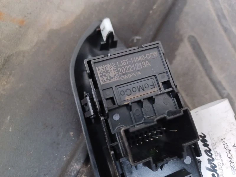 Store Home About Us Customer Resources Feedback Contact Us Driver Left Front Door Switch LJ6T14540CCW For 21-23 Bronco Sport 2923157 Free Shipping - 90 Day Warranty - Est. 1923 Description Restore Your Ride with our Genuine Door Electric Switch Discover Quality OEM and Reliability at Schram Auto Parts Verify Fitment: Ensure a Perfect Match for Your Vehicle Restore your driving experience with our Door Electric Switch . Fitment is crucial, and we're committed to providing accurate details. Verify compatibility by using the part number, examining detailed pictures, and reading the comprehensive description. Why Choose Schram Auto Parts? Tested and Certified: Our Door Electric Switches undergo rigorous testing for optimal performance. Reliability: Count on genuine OEM quality for lasting functionality. Customer Satisfaction: Your questions and concerns matter—our team is here to assist you. Enhance Your Vehicle's Interior Upgrade your car's interior functionality with our reliable Door Electric Switch. Experience smooth operations and effortless control. Make driving a pleasure again! Unleash the Potential: Ask Us Anything! Curious about compatibility, installation, or anything else? **If you have any questions, please ask us!** We're dedicated to providing the information you need for a confident purchase. Transform your driving experience with Schram Auto Parts—where quality meets affordability. Ask Chad today! Vehicle 2023 BRONCOSPT Mileage 27000 Part Grade A What's this? Conditions LF,MASTER,28K Fitment Guide This item will fit the following vehicles / applications: BRONCO SPORT 21-22 (driver's), mirror R# 2923157 Stk# LR0712 Holl# 641-10641L More Parts for 2023 BRONCOSPT » More Parts from this exact vehicle. » Accessories Brakes and suspension Cooling Systems Electrical and Lighting Engine and Drivetrain Exterior Parts & Sheet Metal Interior Parts Wheels and Tires Customer Service Payments Shipping International Returns FAQs Contact Us Quick Links Store Home About Us Feedback