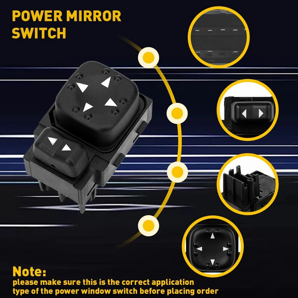 Features: *Simple installation, direct replacement without any tools. *Stable performance with long service life. *Superior material with durable function. Specifications: OE Number: 15045085,19259975 Pin quantity: 9PIN Note: Please make sure your OE number is as same as ours before the purchase, otherwise it will not fit your car. Fitment: 1999-2002 Silverado 1500 2500 3500 2000-2002 Sierra 1500 2500 3500 2000-2002 Tahoe, Suburban 2000-2002 Yukon, Yukon XL Package Include: Power Mirror Switch*1 Driver Left Power Mirror Switch Control 15045085 For GMC Sierra Chevy Silverado Features: *Simple installation, direct replacement without any tools. *Stable performance with long service life. *Superior material with durable function. Specifications: OE Number: 15045085,19259975 Pin quantity: 9PIN Note: Please make sure your OE number is as same as ours before the purchase, otherwise it will not fit your car. Fitment: 1999-2002 Silverado 1500 2500 3500 2000-2002 Sierra 1500 2500 3500 2000-2002 Tahoe, Suburban 2000-2002 Yukon, Yukon XL Package Include: Power Mirror Switch*1 Note: We offer a 2-year warranty and 60-day free returns. If you have any questions about our product, please contact us first, we will help you with it. We will reply you within 24 hours in working days. I'm a new seller, thanks a lot for your trust and convince! I will serve you with all my heart. Contact us: 1. Negative feedback will not help resolve any problems you have, please contact us via eBay messages before leaving negative feedback, our customer service will make best effort to help you with the issues. 2. We maintain high standards of excellenceand strive for 100% customer satisfaction! Feedback is very important to us. We request that you contact us immediately Before you give us neutral or negative feedback, so that we can satisfactorily address your concerns. Item Specifics Brand Unbranded Manufacturer Part Number 15045085, 19259975 Type Door Mirror Switch To Control Wing Mirror Manufacturer Warranty 2 Years Placement on Vehicle Front OE/OEM Part Number 15045085,19259975 Custom Bundle No Universal Fitment No Fitment Type Direct Replacement Interchange Part Number For 2000 2001 2002 Avalanche 1500 Avalanche 2500 Escalade Payment 1. Instant PayPal payment is the preferred method of payment. We also accept payment via PayPal, DebitCard, Visa, MasterCard, Discover. 2. Before payment,Please keep the consistency of Paypal address and ebay address. 3. Quantity orders are welcome! Shipping 1. All items will be shipped in 24 hours after receiving your payment . 2. We ship this item to US only via USPS first class mail. It usually takes 3-6 working days to deliver. Returns 1. We offer free return & money back guarantee. If you are not satisfied with your purchase for any reasons, you can return the item for refund or replacement/exchange. All returns must include the original packaging. (Please refer to our return policy for details.) 2. If you don't return goods within 60 days from date of purchase, your right to cancel will be revoked. Any items damaged because of incorrect installation will not be refunded. Please contact us for return or troubleshooting help prior to returning any products. Contact Us 1. Negative feedback will not help resolve any problems you have, please contact us via eBay messages before leaving negative feedback, our customer service will make best effort to help you with the issues. 2. We maintain high standards of excellenceand strive for 100% customer satisfaction! Feedback is very important to us. We request that you contact us immediately Before you give us neutral or negative feedback, so that we can satisfactorily address your concerns. FAQ 1. Can you tell me when my order will be shipped? Actually we will ship the item within 1 business day after receiving orders. But USPS need to take longer time to update tracking info and arrange delivery during the challenging time for now. If your order was not shipped more than 3 business days, please contact us with your order number to get quick support. 2. My item has not arrived, what's taking so long? Sometimes items take longer than expected, especially if it's going far or to rural area. Check with your post office to see if your item has been held up. Sometimes USPS will not update a tracking number until it has arrived at its destination. If your item still has not arrived after a few days, let us know so we can double check for you and help solve it asap. 3. Do you ship to Canada, United Kingdom, Australia, etc.? Unfortunately, we could only ship to United States (Domestic shipment) at the moment. 4. I bought the wrong items/ the items were not compatible with my vehicle. Please contact us via ebay message to get quick support. DESCRIPTION PAYMENT SHIPPING RETURN POLICY CONTACT US Hot Item FOR GMC BUICK TAHOE CHEVROLET AC YUKON CONTROL CLIMATE DASH REPAIR BUTTON DECALS USD 10.79 Front Door Power Window Control Switch For Chrysler 2017-19 Pacifica 68262253AB USD 22.79 For FORD Excursion F150 F250 F350 F650 Power Driver Door Lock Switch YL3Y14028AB USD 14.99 Transmission Oil Pressure Switch Sensor For Honda Accord Acura RDX MDX RL TL USD 16.79 6-Way Power Seat Switch For 2007-14 GMC Sierra Chevy Silverado 1500 2500 3500 HD USD 16.99 New List Item 2pcs H4 9003 Super White 2143LM Kit LED Headlight Bulbs High Low Beam Combo USD 28.99 1 Set Automatic Transmission Filter w/ Gasket For Toyota Highlander 2010-12 USD 16.99 Front Rear Car Seat Covers Leather Protectors For 2009-22 Ford F150 Crew Cab USD 126.99 Dynamic LED Side Mirror Turn Signal For Light C117 Mercedes-Benz X156 X204 W221 USD 22.99 Aluminum Transmission Filter Gasket For Toyota Matrix 2.4L 2WD 2010 2011 2012 USD 17.19 Excellent Delivery Driver Left Power Mirror Switch Control 15045085 For GMC Sierra Chevy Silverado Features: *Simple installation, direct replacement without any tools. *Stable performance with long service life. *Superior material with durable function. Specifications