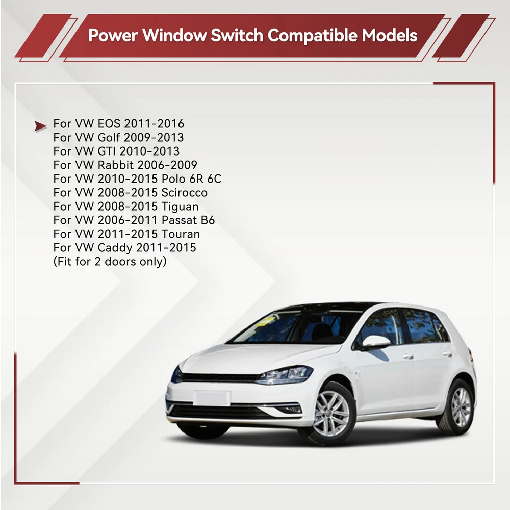 Driver Side Power Window Switch 5K3959857 For VW Golf MK5 MK6 GTI EOS 2 Doors Description: Type:Power Window Switch Placement of Vehicle:Front Number of Pin:4 Pins OE:5K3959857, 5K3959857A, 5K3 959 857 Features: 1.100% Brand new 2.Durable,long lifetime guaranteed 3.Perfect aftermarket replacement Fitment: For VW EOS 2011-2016 For VW Golf 2009-2013 For VW GTI 2010-2013 For VW Rabbit 2006-2009 For VW 2010-2015 Polo 6R 6C For VW 2008-2015 Scirocco For VW 2008-2015 Tiguan For VW 2006-2011 Passat B6 For VW 2011-2015 Touran For VW Caddy 2011-2015 (Fit for 2 doors only) Note: -We provide clear pictures, measurements where possible. -Please check as much as possible to make sure the item is the one that you need. Package Included: 1* Electric Window Switch We accept Paypal and majoy credit cards payment When you place an order, please choose a shipping method and pay for the order including the shipping fee within 48 hours. And please make sure your current address correct after your payment within 1-2 days! About Shipping 1. Receiving time = Processing time + Shipping time 2. Processing Time: Around 1-3 Days 3. Shipping Time: 15-26 Days By Air Mail 3-10 Working Days By Express We do not guarantee delivery time on all international shipments due to differences in customs clearing times in individual countries, which may affect how quickly your product is inspected! Important Notice >Transit Time Is Best Estimated But NOT Guaranteed As Transit Time Varies >Orders may be subject to import taxes, customs duties and fees levied by the destination country.Additional charges for customs clearance must be fulfilled by the recipient; We no control over these charges, nor can we predict what they may be. 100% Customer Satisfaction Is Our Top Priority For Any Reasons You Are Not Satisfied With The Products Within 30 Days Of Purchase, Return Or Exchange Can Be Issued, Customers Are Responsible For The Return Shipping Cost And Subsequent Replacement Shipping Cost For An Exchange Item. Replacement Item Will Be Processed And Shipped Upon Return And Inspection Of The Original Item. Return Items Must Be In Their Original Packaging And Unused Condition, Or They Will Be Rejected And Sent Back To You. Due To The Nature Of The Products We Sell, We Carefully Inspect All Packages Prior To Shipping. All Of Our Products Are Sold As Brand New, All Damaged Products Are Considered Damaged During Transit. If You Received A Damaged Or Broken Item, Please Save All Packaging Material And Paperwork And Contact Us Immediately So We Can Help You With The Damage Claim With The Shipping Carrier. No Claims Will Be Honored After 14 Days Upon Item Receive. Digital Photos Will Be Required For All Cases. All Products Come With A 60 Days Limited Warranty Against Manufacturer’s Defects. No Exchange Will Be Issued On Products That Have Been Damaged In Any Way. Warranty Does Not Applied To Improper Installation, Water / Fire Damage, Modification, Or Any Acts Of Nature . If you have any question or concern, please feel free to contact us via eBay massage directly, we will get back to you as soon as we are available ATTENTION : We do not answer any emails over the weekend Please send message to us.We will reply your message in 24 hours, Our working time: 9:00 AM-22:30 PM (GMT+ 08:00 Beijing) 1:00 AM -14:30 PM (GMT+ 00:00 London) 19:00 PM-08:30 AM (GMT- 06:00 USA/Canada) Why Choose us? 1. A tremendous variety of products-- With over 200,000 items in stock, we are one of the world's largest online stores in automotive aftermarket product sector. You'll have more choices than what you can ever imagine. What's more, we're updating with over 100 new arrivals per month! 2. Affordable prices -- we are offering the latest car parts and accessories for almost 20 years, we're always keeping up with the newest trends, while most importantly, making the prices as low as we can. 3. Free worldwide shipping -- Yep, you won't believe that you'll enjoy free worldwide shipping with us (unless stated otherwise),it's not a joke,but an absolute truth. 4. No-question refund and return-- Anything wrong issuing quality and breakage can be returned or refundable. Car Remote Central Door Locking Kit Red Thread Steering Wheel Cover Wiper Nozzle Gray Steering Wheel Cover