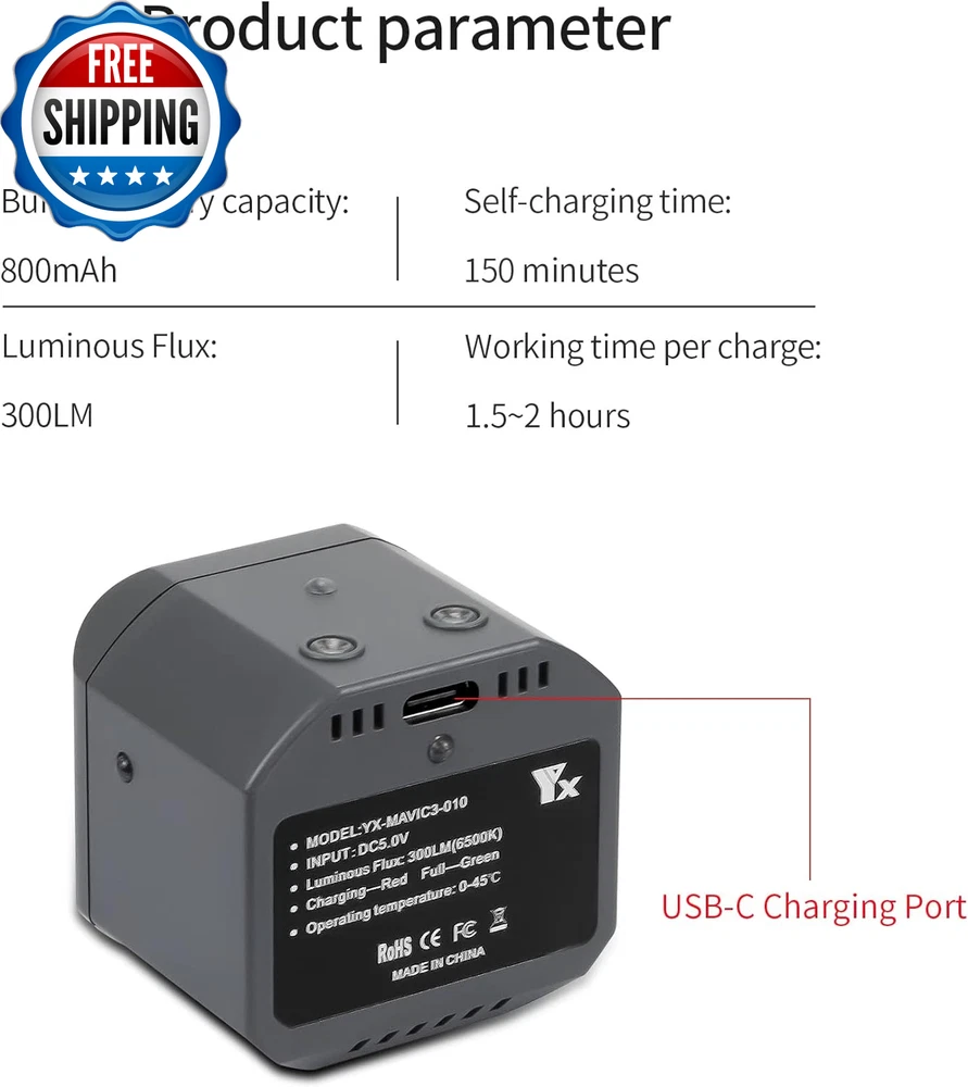 Drone Night Flight Lights for DJI Mini 4K/2,Mini 4/3 Pro,Mini Se,Mavic Mini,Mavic Air,Spark,Led Search Light Kit Accessories Night Flight Light specially designed for DJI Mini 4K,Mini 2,Mini 4 Pro,Mini 3,Mini 3 Pro,Mini SE,Mavic Mini,Mavic Air,Spark Drone 3-kinds of brightness adjustable for for different usage scenarios: Strong Light, Medium Light, strobe Product parameter: Built-in battery capacity: 800mAh, Self-charging time: 150 minutes, Luminous Flux: 300LM, Working time per charge: 1.5~2 hours Easy and fast installation and removal with the rubber strap 【What You Get】1x searchlight,1x Adapter,1x Expansion Mount,1x Charging Cable Night Flight Light specially designed for DJI Mini 2,Mini 4 Pro,Mini 3,Mini 3 Pro,Mini SE,Mavic Mini,Mavic Air,Spark Drone Item model number YX-D-MINI3-003 Part Number YX-D-MINI3-003 Style Modern Bulb Features Adjustable Brightness, Strobe Switch Installation Type Strap Mount Power Source Battery powered Material Rubber Type of Bulb Led Batteries Required? Yes Package Dimensions 4.33 x 2.17 x 2.05 inches Item Weight 3.88 ounces Batteries 1 Lithium Ion batteries required. (included) Manufacturer recommended age 12 years and up Shade Material Rubber Batteries Included? Yes Luminous Flux 300 Lumen Included Components battery Shipping Fast shipping is very important for us. Our standard US shipping service is FREE. Your order will be shipped within 2-3 business days upon full payment received. Your order will be delivered within 2-3 business days after the handling time. We only ship to the confirmed PayPal address. We reserve the right to cancel any order for any reason at any time. We are not responsible for undeliverable addresses. Returns and payment We offer a 30 days return policy from checkout winning date. We allow only PayPal as payment method FeedBack Your feedback very important to us, after you get your package and you are satisfied with our service please leave us positive feedback If you have any problem with your order / any questions please before leave any type of feedback Please visit our eBay store to check out other items for sale! Thank you for shopping at our store.