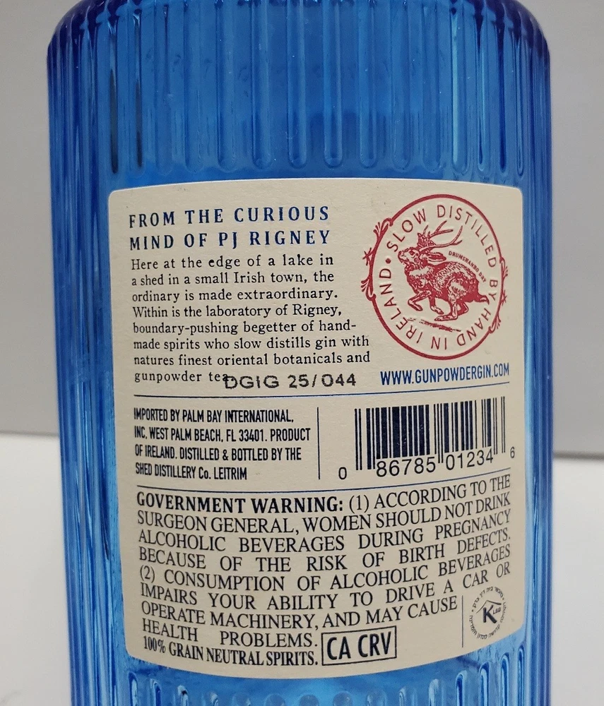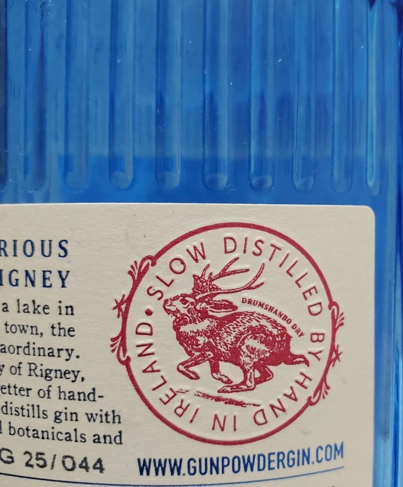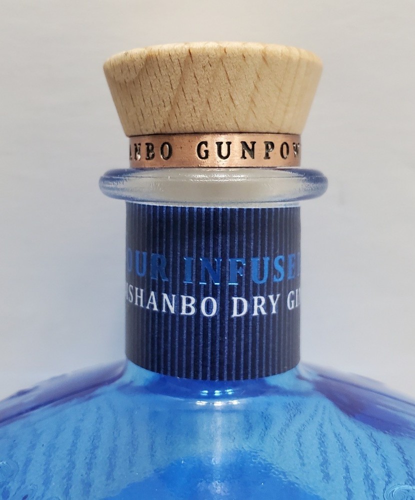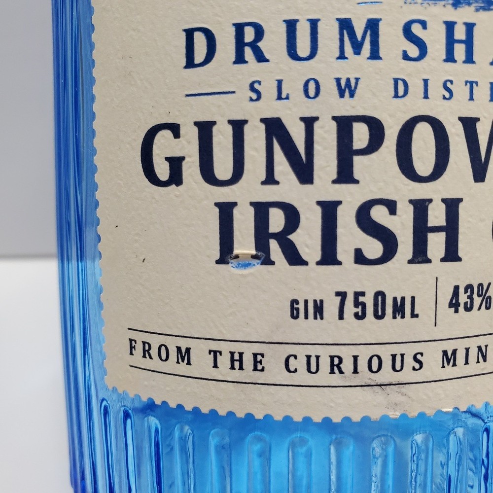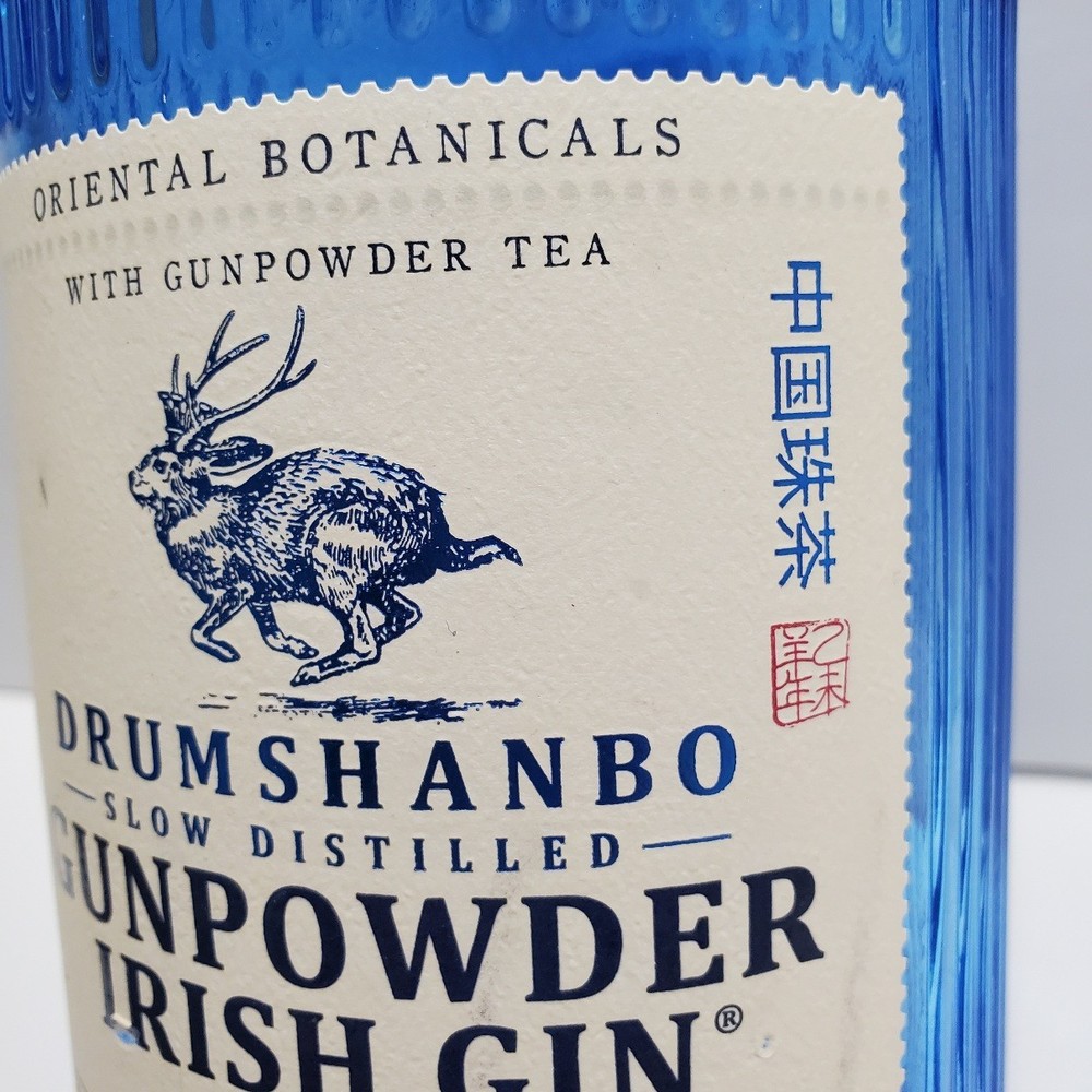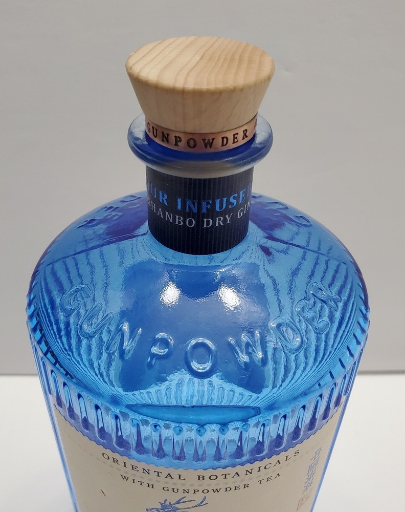 Drumshanbo Gunpowder Tea Irish Gin Empty Blue Bottle 750ml with cork One small nick on the front label