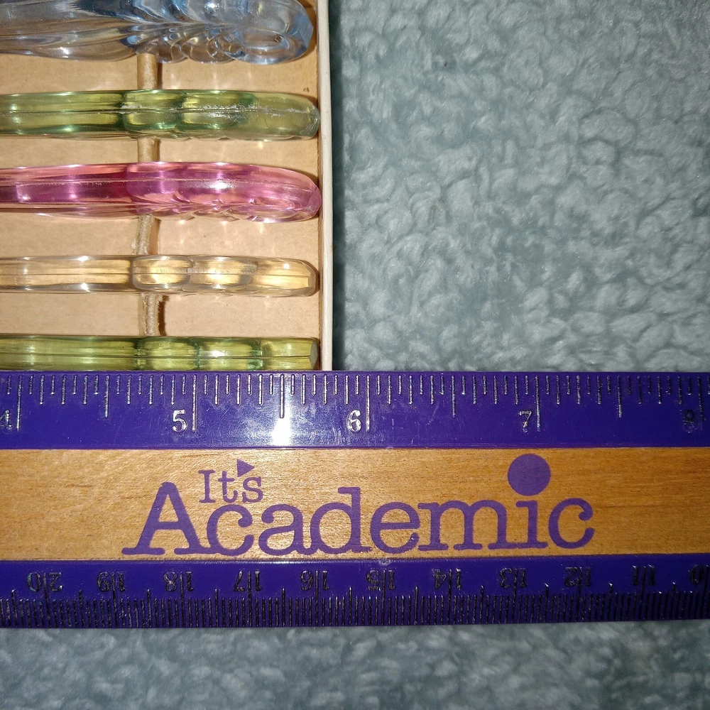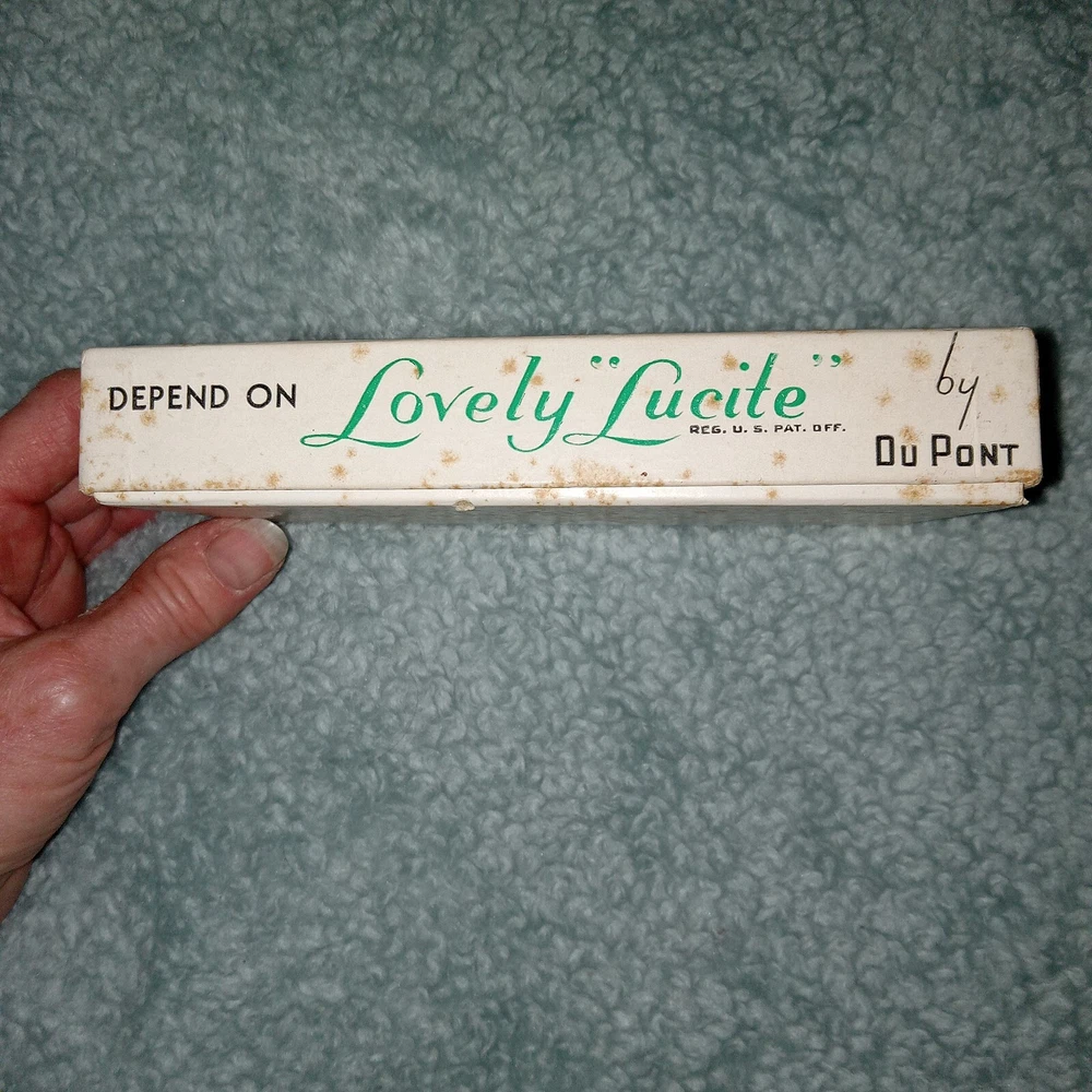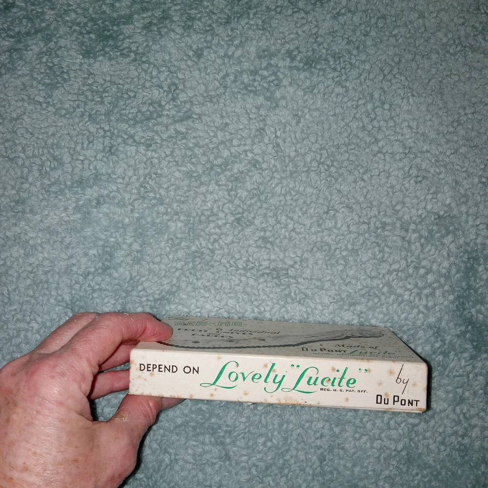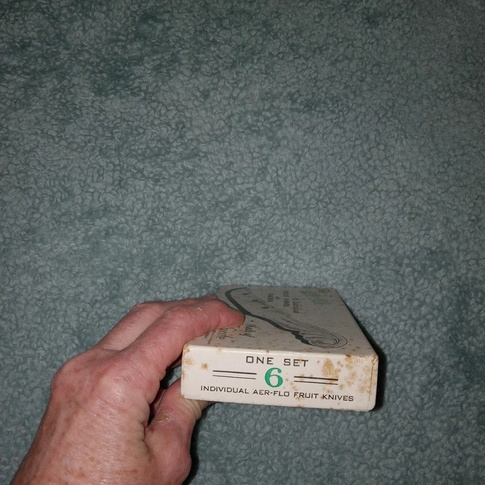 MCM vintage DuPonte "Lucite" AER-FLO, set of 6 pastel colored Fruit or pare knives, or soft cheese, great for Charcuterie, in original box. Box shows signs of age, knives are in great condition; see last photo for edging on 1 green knife.