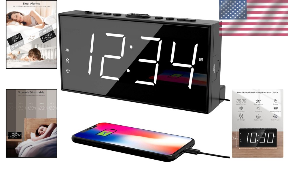 Dual Alarm Clock with Loud LED Display & USB Charging - Ideal for Deep Sleepers ‹ › ‹ › ‹ › ‹ › ‹ › ‹ › ‹ › ‹ › ‹ › ‹ › Dual Alarm Clock with Loud LED Display & USB Charging ⏰ Ideal for Deep Sleepers Features: Easy to use dual alarm settings for family members with varying schedules. 4-level adjustable alarm volume to accommodate different sleep depths. 5-level brightness dimmer for a custom display, ensuring comfort during both day and night. Built-in USB charging port for your smartphone, tablet, or other smart devices. SNOOZE function grants an additional 9 minutes of precious sleep. Outlet operation with battery backup to maintain alarm and time settings even during power outages. 12/24 hour time format with Daylight Saving Time option. Convenience and Clarity: Large 7" LED display provides clear time visibility from across the room. Adjustable volume perfect for both heavy and light sleepers. Simple setup with clearly marked buttons, making it easy for kids and seniors alike. Stylish and Practical: A chic design that complements any bedroom decor, perfect for teens, seniors, and everyone in between. This multifunctional clock acts not only as an alarm but also as a stylish accessory for your bedside table. The Perfect Gift: Looking for an ideal gift solution? This dual alarm clock is perfect for any occasion—be it Christmas, New , or Birthdays. Suitable for all ages, you can gift it to children, seniors, friends, or family members. Plus, it comes with a 365-day product , showcasing our commitment to your satisfaction. Don’t just wake up—wake up in style and with ease. Secure your Dual Alarm Clock today and take the first step towards more peaceful mornings! Shipping Free & Fast Shipping - We offer free shipping to most of the USA with a normal delivery time of 3-7 days. However, due to the current situation, additional delivery time (up to 3 weeks) may be required for some items. Alternative Carriers - We may use alternative carriers (e.g. USPS, FedEx, UPS, etc.) to ensure your package arrives safely and on time. Due to the use of multiple carriers, we are unable to provide a tracking number automatically. Handling Time - Orders are processed and shipped within 1-2 business days of receiving cleared payment. Shipping Restrictions - Shipping to Alaska, Hawaii, Puerto Rico, Guam, and other US territories may incur shipping charges or delivery restrictions. Please contact us before ordering, or your order can be refunded/cancelled. State Restrictions - There may be restrictions based on your state of purchase. For example, certain items may not be shipped to California due to state regulations. Contact for Tracking Updates - If you require tracking updates or have any concerns about the delivery of your order, please feel free to contact us, and we will be happy to assist you. Return 30-Day Hassle-Free Returns - We want you to be completely satisfied with your purchase. If you are not, you can return the item within 30 days of receiving it for a full refund or exchange. Easy Return Process - To start a return, simply contact us and we will provide you with a prepaid return shipping label and detailed instructions. Restocking Fee - There are no restocking fees for returns. However, the buyer is responsible for return shipping costs if the return is not due to a seller's error. Refund Processing Time - Refunds will be processed within 5 business days of receiving the returned item in its condition. Payment We accept all major credit cards, PayPal, and Apple Pay for your convenience. Your payment information is secure and encrypted to ensure a safe and seamless transaction. Please complete your payment within 3 days of purchase to avoid any delays in shipping. Feedback Your feedback is extremely important to us. We strive to provide the best products and customer service possible. If you are satisfied with your purchase, please take a moment to leave us a positive review. If you have any concerns or issues with your order, please contact us before leaving negative feedback. We are committed to resolving any problems and ensuring your satisfaction. Contact Us If you have any questions or concerns, please feel free to out to our customer support team. You can contact us through the eBay messaging system. We are available Monday to Friday, 9:00 am to 5:00 pm EST, and we will do our best to respond to your inquiry within 24 hours. Buy it now and enjoy a pleasant shopping experience! Unit Quantity: 0.6 lb Features: 12-Hour Display,24-Hour Display,Battery Backup,Dual Alarm,Large Display,USB Charging Port,Loud Alarm,Adjustable Volume,Dimmable,Snooze,Daylight Saving Time (DST) Material: Plastic Room: Bedroom,Home Office,Kid's Room Department: Kids,Teens,Adults Type: Standard Alarm Clock Display Type: Digital Color: White Movement: Quartz (Plug-In Electric) Power Source: Electrical Style: Digital Frame Material: Plastic Shape: Rectangular Item Height: 1.5 Inches Item Weight: Less Than 1 lb Unit Type: lb