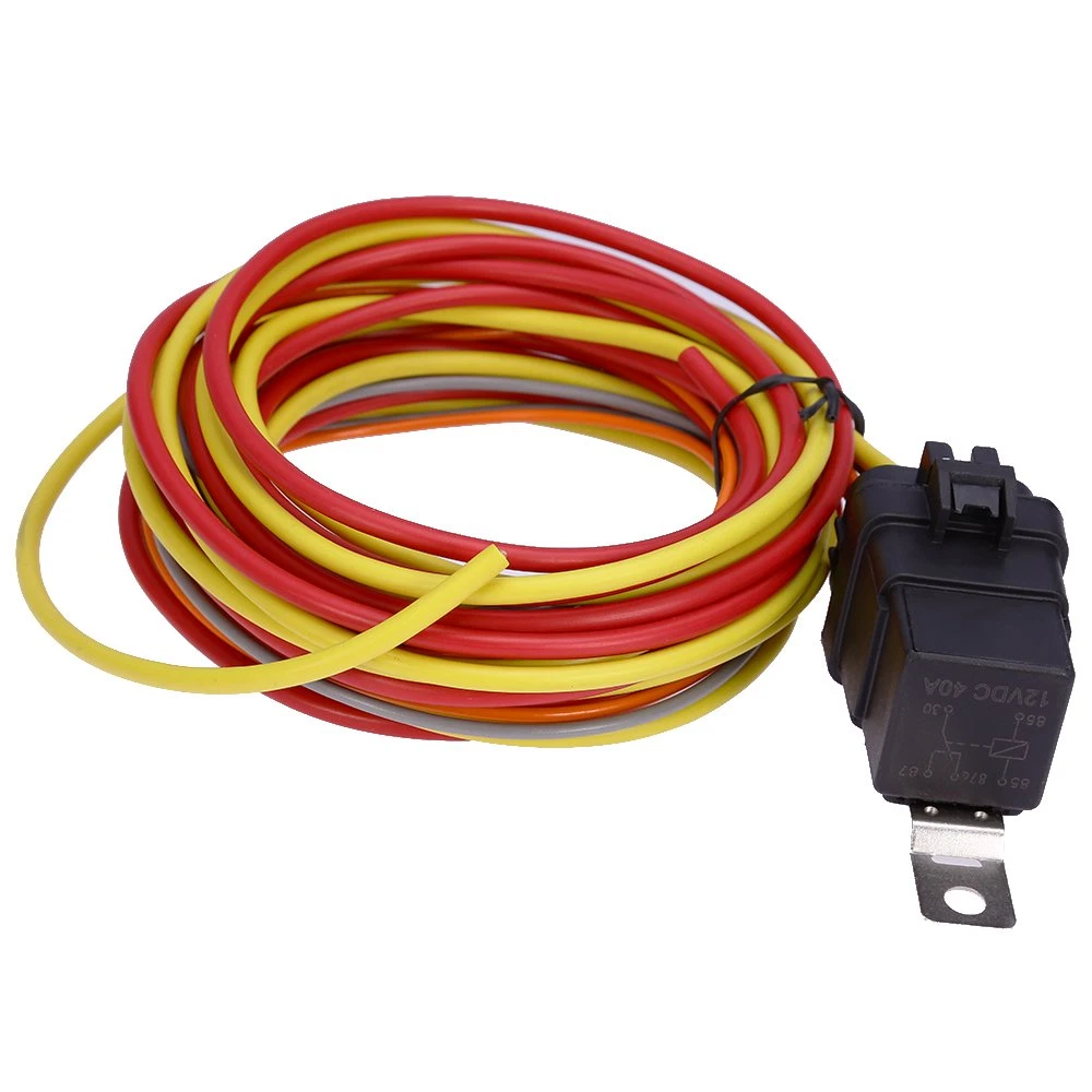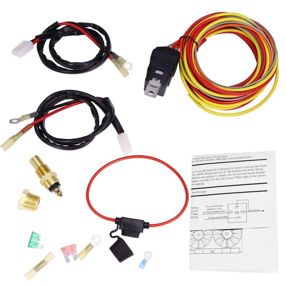Store New Arrivals Add to Favorite View Feedback Contact Dual Electric Cooling Fan Wire Harness Kit Electric Fan Wiring Kit 185 on 165 off Thermostat 50 AMP Relay New Description Item model number 7L5533A226T^3J8P Wattage 35 watts Country of Origin China Compatible Devices Transmission Coolers Package Dimensions 7.01 x 6.26 x 2.44 inches; 1.59 Pounds Voltage 12 Volts Cooling Method Air Is Discontinued By Manufacturer No Brand Hoypeyfiy Manufacturer QKPARTS Fitment: 2 x 8 inch Fans, 2 x 10 Inch Fans, 2 x 12 Inch Fans, 2 x 14 Inch Fans Single, 8 Inch Fan Single, 10 Inch Fan Single, 12 Inch Fan Single, 14 Inch Fan Single, 16 Inch Fan(Two 16 inch fans,need 2 Relay Kits) Control: Activates at 185 degrees and deactivates at 165 degrees Condition: Brand new and securely packaged Easy Installation: Directly replaces existing parts Package Included: 185 Degree Thermostat Switch, 1 Relay Wire Harness, 1 3/8" NPT Thread-In Probe, 2 Ring Terminals, 2 Fan Pigtail Connectors, 1 Fuse Holder, 3/8" to 1/2" Adapter 30 & 40 amp Fuses, English instruction Product Description Specifications Brand: QKPARTS Condition: 100% new Voltage: 12.0 volts Color: red and yellow Material:plastic copper aluminum Item Type: Electric Cooling Fan Wire Harness Kit Item Description Function This kit is set up to turn your electric fan on at 185 degrees and shut off at 165 degrees and will work with any 12 volt system. COMES ON at 185 degrees and turns off at 165 degrees. It is a 3/8" pipe thread, this kit includes everything you'll need to hook up to your fan. Works for 2 x 8 inch Fans 2 x 10 Inch Fans 2 x 12 Inch Fans 2 x 14 Inch Fans Single 8 Inch Fan Single 10 Inch Fan Single 12 Inch Fan Single 14 Inch Fan Single 16 Inch Fan (Two 16 inch fans, need 2 Relay Kits) Included in this Relay kit 185 Degree Thermostat Switch 1 Relay Wire Harness 1 3/8" NPT Thread-In Probe 2 Ring Terminals 2 Fan Pigtail Connectors Included 1 Fuse Holder 3/8" to 1/2" Adapter 30 & 40 amp Fuses ABOUT US We offer the best prices around on high quality products. Our E-store includes media such as books, movies, music and games while offering electronics, toys, sporting apparel, clothing, tools, general home, garden items and more. SHIPPING We are always working hard to ensure your package arrives as soon as possible. Please understand that some factors like weather, high postal traffic, and the performance of shipping companies are outside of our control. RETURNS We offer a 30-Day Return Policy on items which you are not completely satisfied with. You have the option for a full-refund or an exchange of the item. No returns are available on items shipped outside of the USA. PAYMENT We accept PayPal. CONTACT US This page content is yet to come Please ad us to your favorite seller and visit again later Thank You CUSTOMER SATISFACTION We try our very best to make sure every customer is completely satisfied. If there's a problem, message us! We're happy to help.