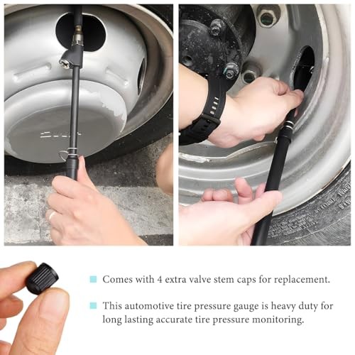 Return Policy Fast Delivery Trusted seller Dual Head Tire Pressure Gauge, Heavy Duty Extended Tube Pen Air Gauges Range 10-150PSI 1-10Bar, Straight-On Foot Pressure Checker for Car Semi Truck RV Van Motorcycle Tires Product Description Clever Design: The gauge carries a straight-on chuck for outer stems and a 30-degree reverse chuck that slips between twin wheels or deep rims, letting you reach valves other tools miss. Switching ends takes only a twist of the wrist, so one gauge handles both easy and hard-to-reach locations Accurate Scale: This tire gauge features PSI (10-150) on one side and BAR (1-10) on the other, enabling instant readings in either unit. The clear markings stay legible over time, giving reliable readings that help keep tires inflated within the recommended range Quality Material: This heavy-duty tire pressure gauge is constructed with premium materials, including a zinc alloy chuck, precision copper core, and rugged stainless steel body, delivering exceptional corrosion resistance and impact durability to maintain reliable, long-term performance Simple Operation: To measure tire pressure, remove the valve cap, press the pressure gauge chuck onto the valve stem, and the scale will slide out so you can read the pressure displayed. After measuring, loosen the pressure gauge chuck and replace the valve cap Wide Compatibility: This pressure gauge measures 12.13×0.59 inches and is suitable for various vehicles, including semi-trucks, buses, RVs, cars, motorcycles, and trucks. Its extended tube body and double-headed design allow it to flexibly adapt to various tire valve positions Shipping Returns Payment Shipping Shipping is FREE to all addresses other than APO/PO boxes in the lower 48 states. All our stock ships from US-based warehouses. Shipped via USPS or UPS (depending on location and package weight) Unless stated otherwise, all orders will ship within 24-72 hours of your payment being processed. Check our feedback to see the great reviews of FAST shipping we offer. Returns Seller does not accept returns Payment We currently accept payment via eBay managed payments only. Once payment is cleared, we will dispatch your shipment within 1-3 business days. Please refer to the "Shipping" tab for more information regarding shipping speed to your destination.