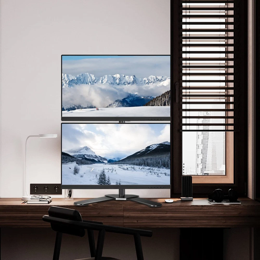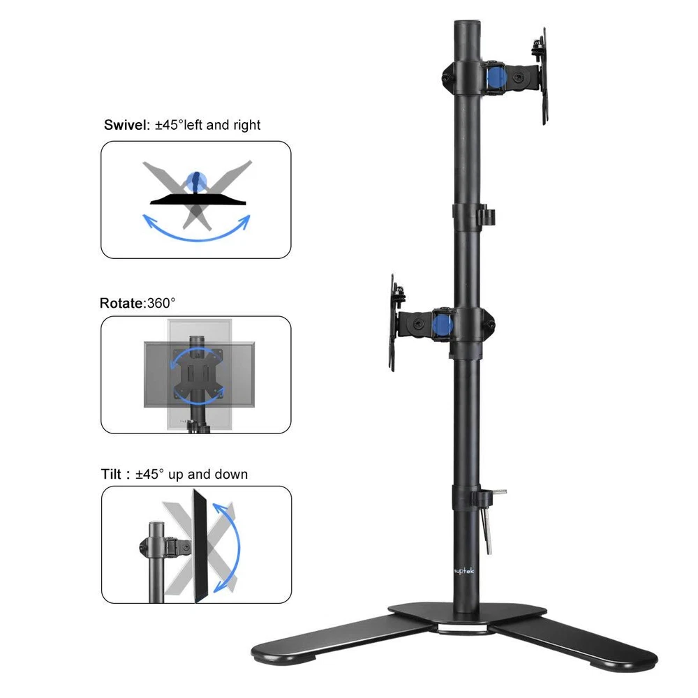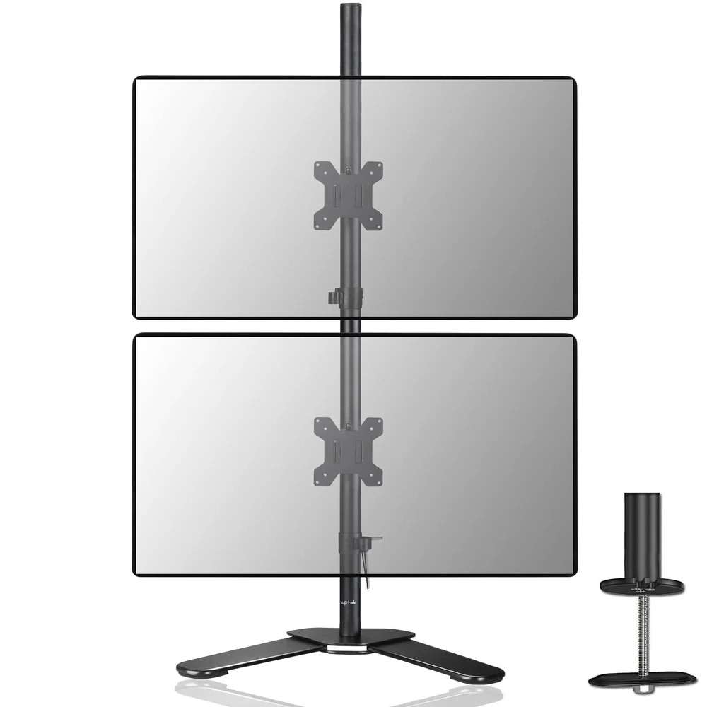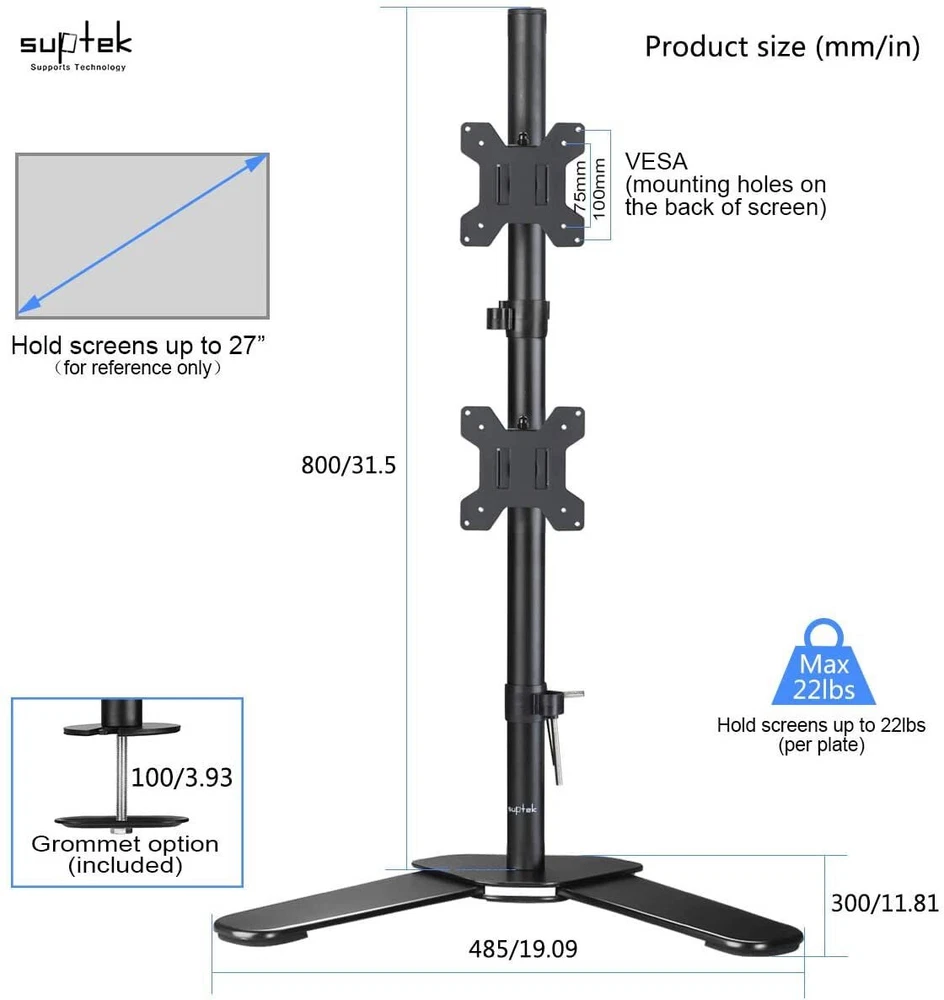ML6802 is a high quality 2- plate full-motion desk mount/stand. How can I check if the mount fit my TV/monitor or no? Firstly, please check each weight of your display, each should be less than 10kg/22lbs. Secondly, if your Monitor or TV has 4 mounting holes on the back of the screen that are in the list of VESA compatibility blow, this bracket will fit. Why this mount can attract me to buy it? 1. With Cable Management to make your desktop clean. 2. Height adjustable within 31.5''(detailed dimension, see 6th picture). 3. Rotate the screen 360 degrees to face any direction in the room. The multi-directional design is also paired with a tilting motion for a 15 degree range. Tilt or pivot your screen for a wide array of potential ergonomic settings. 4. A more reasonable structure make it steady and easy installation Specifications: Fits Screens: 13''-27'' VESA Compatibility: 75x75 - 100x100mm Swivel: 180° Tilt: 15°up/down Construction: cold rolled steel construction Loading Capacity: up to 22lbs/10kg Height of the pole: 80cm/31.5'' & Support: 3-YEAR from date of the original purchase. If the damage or problem due to any manufacturing defect, please our after-sale service team by with your purchase order ID and details of the problem. Our support team will deal with your problem as soon as possible when we are at work. Compatibility - Dual monitor mount ideal for most screens up to 27" and 22lbs each with 75x75mm or 100x100mm backside mounting holes. Aticulation - Rotate 360°, tilt ±45° up and down, swivel ±45° left and right, extra tall height adjustment along the center pole. install options - Free standing base let you easily move your monitors to anywhere. Optional grommet base (fits desk up to 4" thickness) save your valuable desk space. Integrated cable management - Keeps your desk tidy and clean by organizing your power and AV cables in detachable cable holder. Easy installtion - Step-by-step user manual and organized hardware kit for hassle free mounting.
