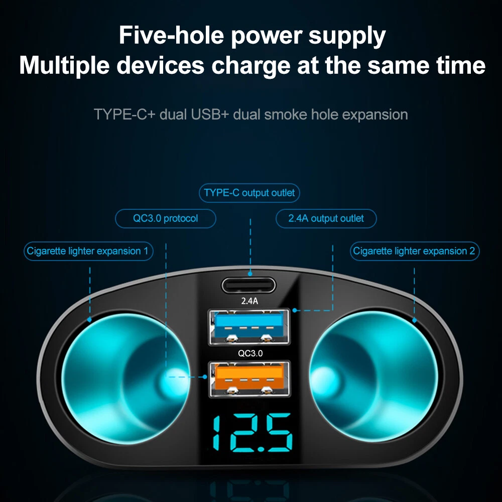 Dual USB Car Cigarette Lighter Socket Splitter Charger Power Adapter Outlet LOT FEATURE 【Extended Cigarette Lighter Converter】: Allows you to use this car accessory to power more devices, support GPS, driving recorder, car vacuum cleaner, car refrigerator, and other car accessories. Maximum support power 120W 【2 USB +1 Type-C Charging Ports】: The cigarette lighter USB charger can quickly charge 3 devices at the same time. Maximum QC3.0 current output. Input: 12V/24V automatic. According to the smart output current of the charging device. Compatible with iphone, iPad, Samsung galaxy , tablet PC, camera and other products. 【Voltage Monitoring-Low Voltage Indicator】: Automatically monitor the voltage and electrical system of the vehicle, and display the voltage of the vehicle on the screen through soft LED lights, allowing you to understand the real-time voltage situation while driving. 【Multi-protection Safety System】: This portable car charger can prevent short circuit, overheating, overcurrent, overvoltage and overcharge. 【Compact Design】: Plug this car socket adapter into your car cigarette lighter. One-piece design, flexible rotation, make your car more tidy, and bring more convenience to your car activities. SPECIFICATION Type:Car Cigarette Lighter PD USB Charger Input Voltage:DC 12V~24V USB Output:2USB+PD Rated Socket Power:120W (max) Safety Fuse:10A Net weight:80g Maximum Support Power:120W Features:Extended Cigarette Lighter Converter,2 USB +1 Type-C Charging Ports,Voltage Monitoring-Low Voltage Indicator,Multi-protection Safety System. Application:Support GPS, driving recorder, car vacuum cleaner, car refrigerator, and other car accessories. PACKAGE INCLUDED 1-10x Car Cigarette Lighter PD USB Charger Payment Return Warranty Shipping Contact us Payment 1. We accept payment via PayPal. Use PayPal at checkout to pay with credit or debit. 2. Immediate payment is required. Shipping will be arranged within 1 business day once payment is cleared. Return 1. We stand behind our items and offer 60 days warranty. All items are in new and working condition unless specified otherwise elsewhere in the description. 2. All Returns - defective or otherwise - MUST BE PREAUTHORIZED to guarantee refund or exchange. Please contact us to get an authorization and return address. 3. Buyer agrees to pay for the cost of re-shipment for undeliverable or wrong addresses. 4. Buyer is responsible for Return Postage as well as a 20% restocking fee if return/replacement is not a result of our mistake such as wrong item. 5. Replacement or Refund will be made upon receipt of the returned item. Please include tracking number so we can process ASAP. If you do not wish to wait for a replacement, please repurchase the item. 6. ALL REFUNDS will be processed via PayPal. Please double check via PayPal history and transaction for confirmation. PayPal will send it back to whatever you used to pay within 3-5 days. Warranty The warranty shall not apply to the following circumstances: a) Damage caused by undue ware&tear, misuse, improper installation or operation, neglect, accidents. b) Damage caused by natural disaters, flood, fire, lightning or pollution. c) If item was opened, any parts removed or repaired by any unauthorized person. Shipping FREE SAME BUSINESS DAY MONDAY- FRIDAY SHIPPING FROM USA. All orders and payments received before 4PM EST (1PM PST) will be shipped the same business day. All other orders within 1 business day. No shipping on Weekends or US Public Holidays. No responsibility for any custom duty Shipping information will be updated when available. Contact us We have always been trying to provide the best service and reliable products for every customer, however, accident may happen sometimes, please contact us to resolve any issue before leaving a negative feedback.