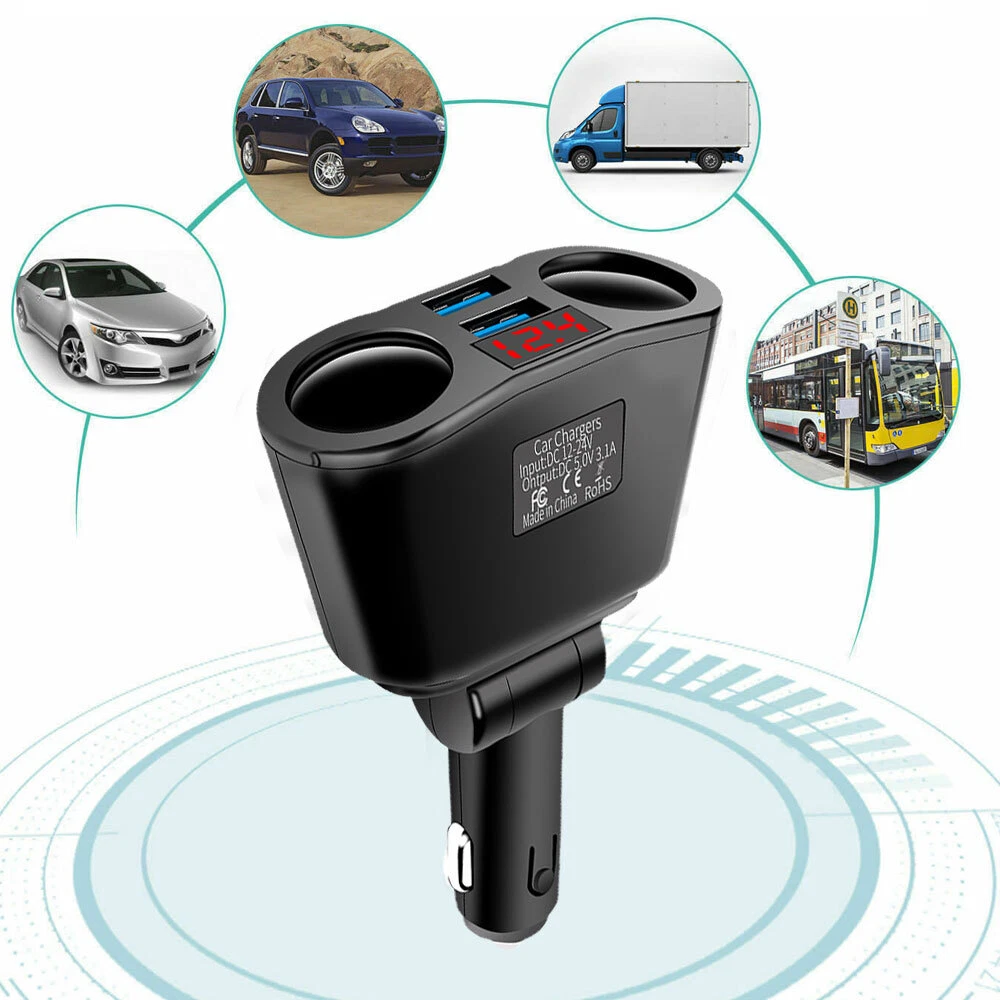 Dual USB Car Parts Power Charger Adapter LCD Cigarette Lighter Socket Splitter Specification: Device Type:Multifunction Car Charger Input:12-24v Output:5V 3.1A Output power:120w Port:Dual USB Port USB output:5V 3.1A Dimension:2.95*1.10*3.48 in (75*28*91mm) Weight:2.06 oz/58g Color:Black Packing Included:1Pc Features: Dual USB produces max 5V/3.1A output current. Supply power for 2 devices at the same time. Suitable for most smart phones/Tablets/PSP/PDA/GPS/MP3/MP4. Intelligent protection, smart chip automatically identify all devices and output fastest charging current. High efficiency with low heat. LCD screen show real-time car battery voltage and output current, you can even see clearly at night. Input voltage range of 12-24V, suitable for universal cars, trucks, SUV, etc. Small and exquisite, easy to carry, suitable for travel convenient use. Payment Delivery details Terms of sales About us Contact us Payment We accept Payment via Paypal . Thank you for your support! Delivery details Items will arrive in 7-25 business days. The arrival time depends on some factors and different areas: This table only offer reference to the arrival time, doesn't mean we delivery to all of the above countries. Once you purchase, please DON'T leave negative or neutral feedback if you haven't received item in 30 days, because we have mentioned the shipping time repeatedly. Customs duty is obligation and liability of a citizen in your country, so buyer should be responsible for any tax and custom duty incurred. For example, Laser Pointer is unacceptable in some countries. Therefore, please double check your local customs policy carefully before purchase. Or, we will NOT be responsible for any failure delivery related destination customs issue. Terms of sales -You have 7 day to contact us and 10 days to return it from the date it was received. If this item is in your possession more than 7 days,it is considered used and WE WILL NOT ISSUE YOU A REFUND OR REPLACEMENT.There are NO EXCEPTIONS! -All Returned items Must Be in the original packaging and you MUST PROVIDE us with the shipping tracking number,specific reason for the return,and your ebay ID. -We will refund YOUR FULL WINNING BID AMOUNT, upon receipt of the item in its original condition and packaging with all components and accessories included,AFTER BOTH Buyer and Seller cancel the transaction form ebay.OR,you may choose to have a replacement. -Return shipping is to be paid by the Buyer. About us We are the Manufacturer who are afford the High Quality with the most Competitve prices in China, If you need any other items or have any questions about our items, pls feel free to contact us . Contact us We strive for 100% customer satisfaction on every sale we complete.