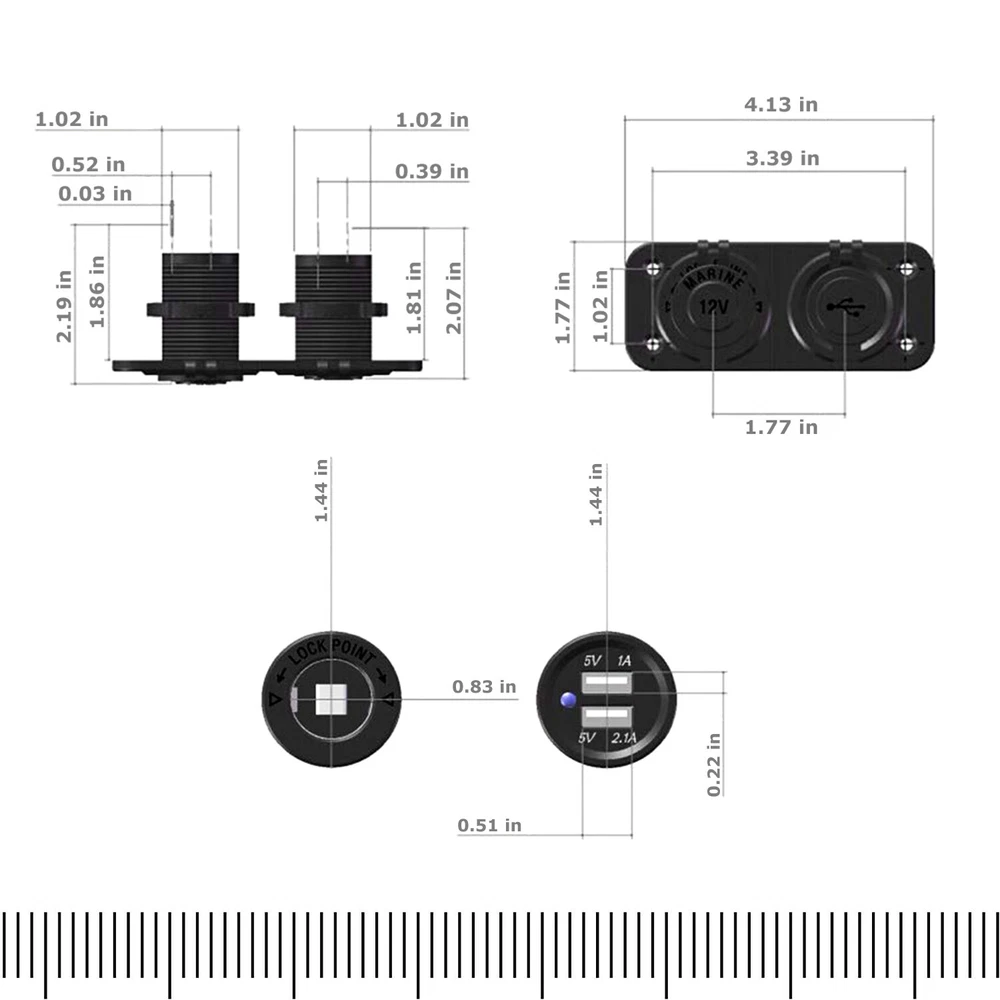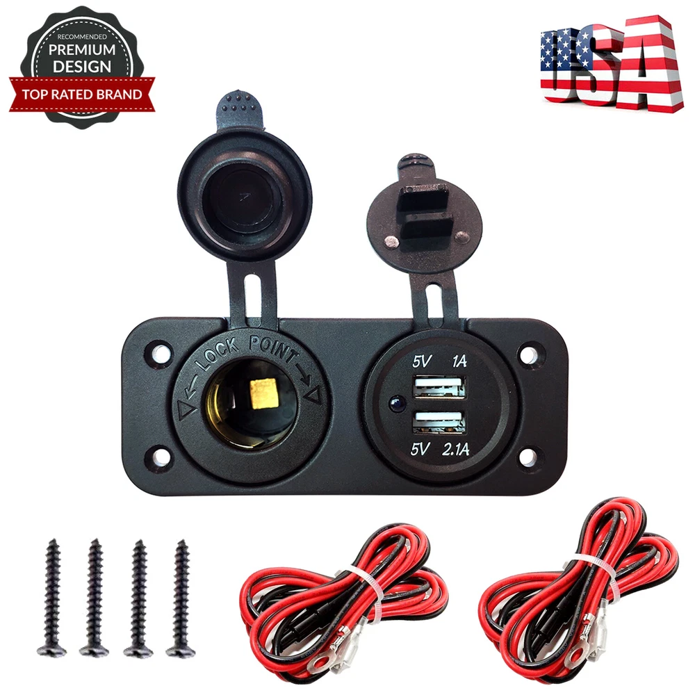 Dual USB Car Lighter Socket Splitter 12V Charger Power Adapter Outlet Features Positive and negative polarity reverse protection Dual USB 2.0A /1A Power Adapter allows charging 2 USB devices simultaneously. Supplying power for your iPhone, IPod, PSP, cell phone, MP3, GPS, camera, tablets etc. Waterproof, dust-proof cover, heavy duty construction can be used for the interior and exterior application. Portable design, easy to install, function port can be detached and rearrange. It can be installed vertically, horizontally, underneath the dash, or any flat surface. Fastened with 4 screws and 6 insulated terminals (supplied). Widely applied in 12-24V motorcycle, car and truck cigarette lighter refit accessories Apply to all USB charging mobile phones or other electronic products. Run multiple accessories at one time, very convenient and easy to use. Specifications Cigarette Lighter Socket: Can be used to light cigarettes: No Input Voltage: DC 12V / 20A; 24v, 10A Output Voltage: 12V Dual USB Charger Interface: 2 Input Voltage: 12V-24V Output Voltage: DC 5V USB Output 1 Current: 2.1A USB Output 2 Current: 1A Indicator: Blue LED Material: ABS Plastic Color: Black Weight: 2.3 oz Dimension: Approx. 4.13" x 1.77" x 2.19" Items Included One (1) Universal 12-24V Cigarette Light Socket Dual USB Power Adapter Four (4) Mounting Screws Two (2) Power Cords Payment Shipping Returns About Us Payment Shipping Returns About Us We accept PayPal, major credit cards, and other methods supported by eBay Managed Payments. We offer FREE shipping on all orders! Your order will be dispatched within 24 hours receiving payment and you should expect to receive it two to five days after dispatch. If you are not completely satisfied within 30-days of your purchase, you can return the product and get a full refund or replacement (your choice). Our return process is eBay managed and very easy to follow. We will be responsible for the return shipping cost of the damaged or wrong items. We are a family owned business located in the beautiful western Pennsylvania. We began as a wholesale jewelry and fashion importer. After successfully selling a few precison jewelry scales on a major online marketplace in 2009, we decided to transform into a professional weight scale distributor. Then soon expanded into other great product categories. See our other items Features ---Positive and negative polarity reverse protection ---Dual USB 2.0A /1A Power Adapter allows charging 2 USB devices simultaneously. Supplying power for your iPhone, IPod, PSP, cell phone, MP3, GPS, camera, tablets etc. ---Waterproof, dust-proof cover, heavy duty construction can be used for the interior and exterior application. ---Portable design, easy to install, function port can be detached and rearrange. It can be installed vertically, horizontally, underneath the dash, or any flat surface. Fastened with 4 screws and 6 insulated terminals (supplied). ---Widely applied in 12-24V motorcycle, car and truck cigarette lighter refit accessories ---Apply to all USB charging mobile phones or other electronic products. ---Run multiple accessories at one time, very convenient and easy to use. Specifications ---Cigarette Lighter Socket: ---Can be used to light cigarettes: No ---Input Voltage: DC 12V / 20A; 24v, 10A ---Output Voltage: 12V ---Dual USB Charger ---Interface: 2 ---Input Voltage: 12V-24V ---Output Voltage: DC 5V ---USB Output 1 Current: 2.1A ---USB Output 2 Current: 1A ---Indicator: Blue LED ---Material: ABS Plastic ---Color: Black ---Weight: 2.3 oz ---Dimension: Approx. 4.13" x 1.77" x 2.19" Items Included ---One (1) Universal 12-24V Cigarette Light Socket Dual USB Power Adapter ---Four (4) Mounting Screws ---Two (2) Power Cords Dual USB Car Lighter Socket Splitter 12V Charger Power Adapter Outlet Features Positive and negative polarity reverse protection Dual USB 2.0A /1A Power Adapter allows charging 2 USB devices simultaneously. Supplying power for your iPhone, IPod, PSP, cell phone, MP3, GPS, camera, tablets etc. Waterproof, dust-proof cover, heavy duty construction can be used for the interior and exterior application. Portable design, easy to install, function port can be detached and rearrange. It can be installed vertically, horizontally, underneath the dash, or any flat surface. Fastened with 4 screws and 6 insulated terminals (supplied). Widely applied in 12-24V motorcycle, car and truck cigarette lighter refit accessories Apply to all USB charging mobile phones or other electronic products. Run multiple accessories at one time, very convenient and easy to use. Specifications Cigarette Lighter Socket: Can be used to light cigarettes: No Input Voltage: DC 12V / 20A; 24v, 10A Output Voltage: 12V Dual USB Charger Interface: 2 Input Voltage: 12V-24V Output Voltage: DC 5V USB Output 1 Current: 2.1A USB Output 2 Current: 1A Indicator: Blue LED Material: ABS Plastic Color: Black Weight: 2.3 oz Dimension: Approx. 4.13" x 1.77" x 2.19" Items Included One (1) Universal 12-24V Cigarette Light Socket Dual USB Power Adapter Four (4) Mounting Screws Two (2) Power Cords Payment We accept PayPal, major credit cards, and other methods supported by eBay Managed Payments. Shipping We offer FREE shipping on all orders! Your order will be dispatched within 24 hours receiving payment and you should expect to receive it two to five days after dispatch. Returns If you are not completely satisfied within 30-days of your purchase, you can return the product and get a full refund or replacement (your choice). Our return process is eBay managed and very easy to follow. We will be responsible for the return shipping cost of the damaged or wrong items. About Us We are a family owned business located in the beautiful western Pennsylvania. We began as a wholesale jewelry and fashion importer. After successfully selling a few precison jewelry scales on a major online marketplace in 2009, we decided to transform into a professional weight scale distributor. Then soon expanded into 