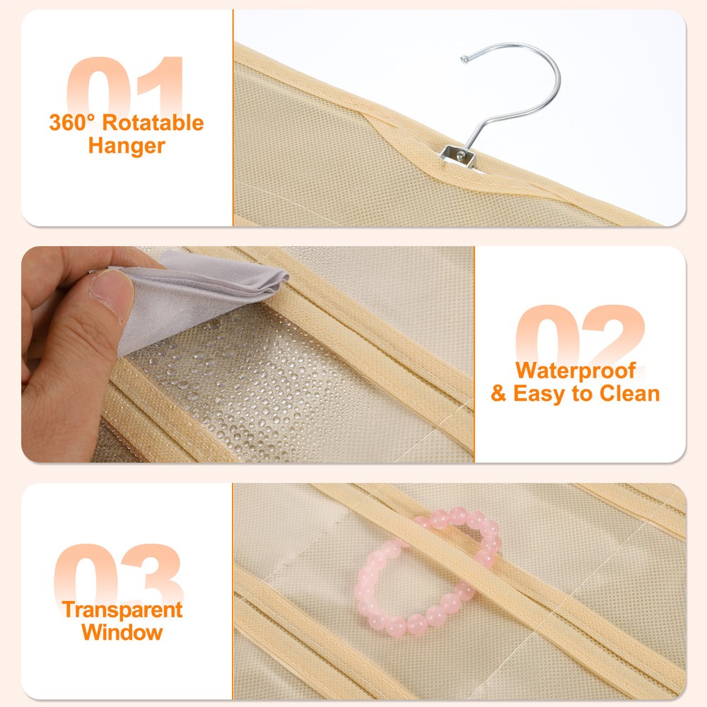 Document Hanging Jewelry Organizers and Storage:The overall size of the jewelry storage bag is 43 x 78 cm / 16.92 x 30.7 inches, with a total of 80 transparent pockets. It is a double-sided design, with 40 small pockets on one side for bracelets, earrings and rings.Easy to Use: Save space, can be hung on the wall, wardrobe, behind the door. Store all jewelry in the same place, so you can pick it up at will.It takes up as little space as a shirt hanging in the closet, saving a lot of space than a jewelry box or jewelry stand.It can be folded or rolled up, making it convenient to carry jewelry on business trips or vacation trips.Protect Jewelry: The compartment design allows for separate storage to reduce dust ingress, protects your jewelry from entanglement, effectively avoids scratches, and prevents oxidation and rust from occurring.In addition, it can also display your beautiful jewelry.Hang Anywhere: With a double-sided design, the jewelry hanger can rotate 360 degrees to any direction you need.Made of durable polyester, PVC materials and sturdy metal hooks, it is sturdy and durable, not easy to break or fade, and can be used for a long time.Multifunctional Jewelry Organizer: It can store and display a large amount of jewelry, and the transparent pocket allows you to easily find jewelry.The wardrobe jewelry hanging storage box has a variety of uses, not only for storing jewelry, but also for nail polish, cosmetics, cards, etc. Dual-sided Hanging Jewelry Organizer with 80 Pockets Beige Hanging Jewelry Organizers and Storage: The overall size of the jewelry storage bag is 43 x 78 cm / 16.92 x 30.7 inches, with a total of 80 transparent pockets. It is a double-sided design, with 40 small pockets on one side for bracelets, earrings and rings. Easy to Use: Save space, can be hung on the wall, wardrobe, behind the door. Store all jewelry in the same place, so you can pick it up at will. It takes up as little space as a shirt hanging in the closet, saving a lot of space than a jewelry box or jewelry stand. It can be folded or rolled up, making it convenient to carry jewelry on business trips or vacation trips. Protect Jewelry: The compartment design allows for separate storage to reduce dust ingress, protects your jewelry from entanglement, effectively avoids scratches, and prevents oxidation and rust from occurring. In addition, it can also display your beautiful jewelry. Hang Anywhere: With a double-sided design, the jewelry hanger can rotate 360 degrees to any direction you need. Made of durable polyester, PVC materials and sturdy metal hooks, it is sturdy and durable, not easy to break or fade, and can be used for a long time. Multifunctional Jewelry Organizer: It can store and display a large amount of jewelry, and the transparent pocket allows you to easily find jewelry. The wardrobe jewelry hanging storage box has a variety of uses, not only for storing jewelry, but also for nail polish, cosmetics, cards, etc. Hot Item Payment 1.We accept eBay payment . 2.Payment must be received within 7 business days of auction closing. Shipping 1.We ship to your eBay or Paypal address. Please make sure your eBay and Paypal address is correct before you pay. 2.Items will be shipped within 1-3 business day when we received payment. 3.Delivery time depends on destination and other factors. Description Policy Dual-sided Hanging Jewelry Organizer with 80 Pockets Beige Hanging Jewelry Organizers and Storage: The overall size of the jewelry storage bag is 43 x 78 cm / 16.92 x 30.7 inches, with a total of 80 transparent pockets. It is a double-sided design, with 40 small pockets on one side for bracelets, earrings and rings. Easy to Use: Save space, can be hung on the wall, wardrobe, behind the door. Store all jewelry in the same place, so you can pick it up at will. It takes up as little space as a shirt hanging in the closet, saving a lot of space than a jewelry box or jewelry stand. It can be folded or rolled up, making it convenient to carry jewelry on business trips or vacation trips. Protect Jewelry: The compartment design allows for separate storage to reduce dust ingress, protects your jewelry from entanglement, effectively avoids scratches, and prevents oxidation and rust from occurring. In addition, it can also display your beautiful jewelry. Hang Anywhere: With a double-sided design, the jewelry hanger can rotate 360 degrees to any direction you need. Made of durable polyester, PVC materials and sturdy metal hooks, it is sturdy and durable, not easy to break or fade, and can be used for a long time. Multifunctional Jewelry Organizer: It can store and display a large amount of jewelry, and the transparent pocket allows you to easily find jewelry. The wardrobe jewelry hanging storage box has a variety of uses, not only for storing jewelry, but also for nail polish, cosmetics, cards, etc. Hot Item Payment 1.We accept eBay payment . 2.Payment must be received within 7 business days of auction closing. Shipping 1.We ship to your eBay or Paypal address. Please make sure your eBay and Paypal address is correct before you pay. 2.Items will be shipped within 1-3 business day when we received payment. 3.Delivery time depends on destination and other factors.
