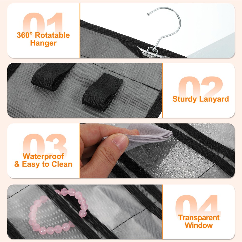 $ 8.9Dual-Sided Hanging Jewelry Organizer with 80 Pockets in Grey