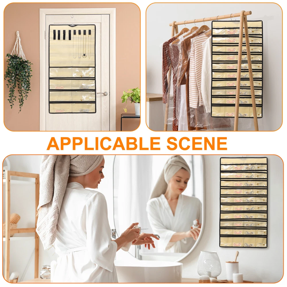Document Hanging Jewelry Organizers and Storage:The overall size of the jewelry storage bag is 43 x 78 cm / 16.92 x 30.7 inches, with a total of 48 transparent pockets. It is a double-sided design, with 40 small pockets on one side for bracelets, earrings and rings; the other side is equipped with a row of 8 hooks for hanging necklaces and bracelets, and 8 large pockets for bracelets, watches, pocket watches, hair accessories and other longer jewelry.Easy to Use: Save space, can be hung on the wall, wardrobe, behind the door. Store all jewelry in the same place, so you can pick it up at will.It takes up as little space as a shirt hanging in the closet, saving a lot of space than a jewelry box or jewelry stand.It can be folded or rolled up, making it convenient to carry jewelry on business trips or vacation trips.Protect Jewelry: The compartment design allows for separate storage to reduce dust ingress, protects your jewelry from entanglement, effectively avoids scratches, and prevents oxidation and rust from occurring.In addition, it can also display your beautiful jewelry.Hang Anywhere: With a double-sided design, the jewelry hanger can rotate 360 degrees to any direction you need.Made of durable polyester, PVC materials and sturdy metal hooks, it is sturdy and durable, not easy to break or fade, and can be used for a long time.Multifunctional Jewelry Organizer: It can store and display a large amount of jewelry, and the transparent pocket allows you to easily find jewelry.The wardrobe jewelry hanging storage box has a variety of uses, not only for storing jewelry, but also for nail polish, cosmetics, cards, etc. Dual-sided Hanging Jewelry Organizer with 48 Pockets and 8 Hook Loops Grey Hanging Jewelry Organizers and Storage: The overall size of the jewelry storage bag is 43 x 78 cm / 16.92 x 30.7 inches, with a total of 48 transparent pockets. It is a double-sided design, with 40 small pockets on one side for bracelets, earrings and rings; the other side is equipped with a row of 8 hooks for hanging necklaces and bracelets, and 8 large pockets for bracelets, watches, pocket watches, hair accessories and other longer jewelry. Easy to Use: Save space, can be hung on the wall, wardrobe, behind the door. Store all jewelry in the same place, so you can pick it up at will. It takes up as little space as a shirt hanging in the closet, saving a lot of space than a jewelry box or jewelry stand. It can be folded or rolled up, making it convenient to carry jewelry on business trips or vacation trips. Protect Jewelry: The compartment design allows for separate storage to reduce dust ingress, protects your jewelry from entanglement, effectively avoids scratches, and prevents oxidation and rust from occurring. In addition, it can also display your beautiful jewelry. Hang Anywhere: With a double-sided design, the jewelry hanger can rotate 360 degrees to any direction you need. Made of durable polyester, PVC materials and sturdy metal hooks, it is sturdy and durable, not easy to break or fade, and can be used for a long time. Multifunctional Jewelry Organizer: It can store and display a large amount of jewelry, and the transparent pocket allows you to easily find jewelry. The wardrobe jewelry hanging storage box has a variety of uses, not only for storing jewelry, but also for nail polish, cosmetics, cards, etc. Hot Item Payment 1.We accept eBay payment . 2.Payment must be received within 7 business days of auction closing. Shipping 1.We ship to your eBay or Paypal address. Please make sure your eBay and Paypal address is correct before you pay. 2.Items will be shipped within 1-3 business day when we received payment. 3.Delivery time depends on destination and other factors. Description Policy Dual-sided Hanging Jewelry Organizer with 48 Pockets and 8 Hook Loops Grey Hanging Jewelry Organizers and Storage: The overall size of the jewelry storage bag is 43 x 78 cm / 16.92 x 30.7 inches, with a total of 48 transparent pockets. It is a double-sided design, with 40 small pockets on one side for bracelets, earrings and rings; the other side is equipped with a row of 8 hooks for hanging necklaces and bracelets, and 8 large pockets for bracelets, watches, pocket watches, hair accessories and other longer jewelry. Easy to Use: Save space, can be hung on the wall, wardrobe, behind the door. Store all jewelry in the same place, so you can pick it up at will. It takes up as little space as a shirt hanging in the closet, saving a lot of space than a jewelry box or jewelry stand. It can be folded or rolled up, making it convenient to carry jewelry on business trips or vacation trips. Protect Jewelry: The compartment design allows for separate storage to reduce dust ingress, protects your jewelry from entanglement, effectively avoids scratches, and prevents oxidation and rust from occurring. In addition, it can also display your beautiful jewelry. Hang Anywhere: With a double-sided design, the jewelry hanger can rotate 360 degrees to any direction you need. Made of durable polyester, PVC materials and sturdy metal hooks, it is sturdy and durable, not easy to break or fade, and can be used for a long time. Multifunctional Jewelry Organizer: It can store and display a large amount of jewelry, and the transparent pocket allows you to easily find jewelry. The wardrobe jewelry hanging storage box has a variety of uses, not only for storing jewelry, but also for nail polish, cosmetics, cards, etc. Hot Item Payment 1.We accept eBay payment . 2.Payment must be received within 7 business days of auction closing. Shipping 1.We ship to your eBay or Paypal address. Please make sure your eBay and Paypal address is correct before you pay. 2.Items will be shipped within 1-3 business day when we received payment. 3.Delivery time depends on destination and other factors.