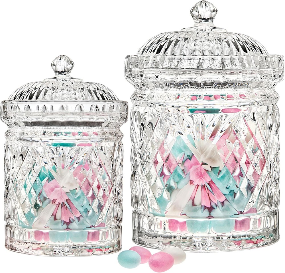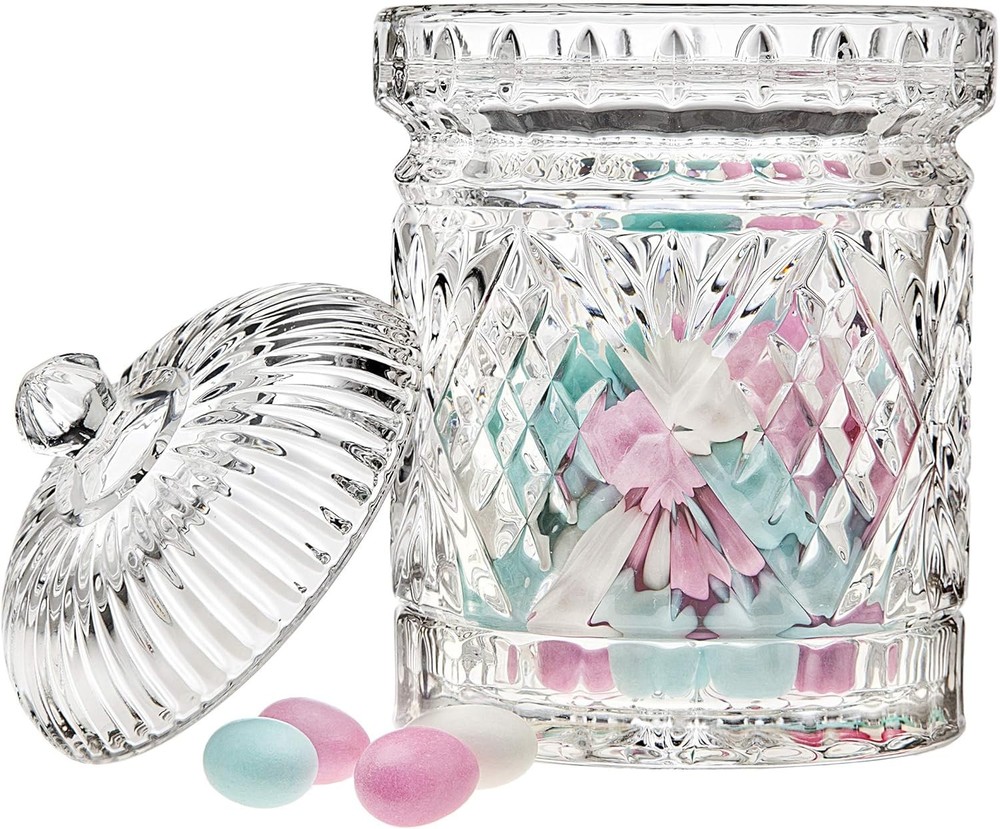 About this item Dublin Crystal Collection biscuit barrel storage container organizer will compliment any decor Brilliant and classic design is also perfect to store cookies candies or just about anything Non-leaded crystal. 7.4 " height Since 1973 has specialized in handcrafted silver, pewter, crystal, stainless, and alternative metal giftware. From candlesticks, barware, bakeware, tea sets and frames, you are sure to find the perfect item for any special occasion. products are available at all major retailers across the US and Canada. › Brand: Color: Clear Material: Crystal Material Feature: Dishwasher Safe Capacity: 2.3 Pounds