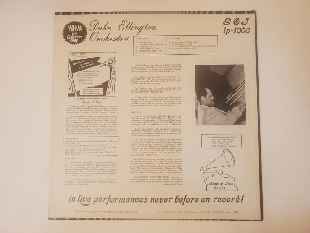 Duke Ellington - An Evening with The Duke (Vinyl Record LP) Record is in an enjoyable condition for listening. Minimal pops, skips, etc. COMBINED SHIPPING DISCOUNTS ARE ENABLED My eBay store has over 35,000 items to choose from. Each record after the first one is only $2.25/each for shipping. Must be all in one order. Discount is automatically applied at shopping cart. To continue, click "BUY IT NOW" or "MAKE AN OFFER".