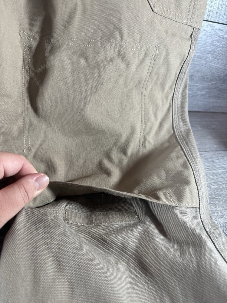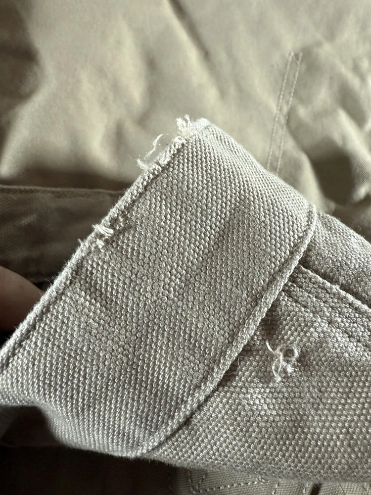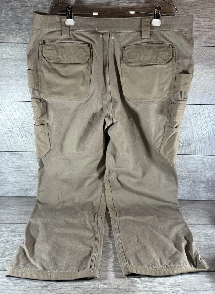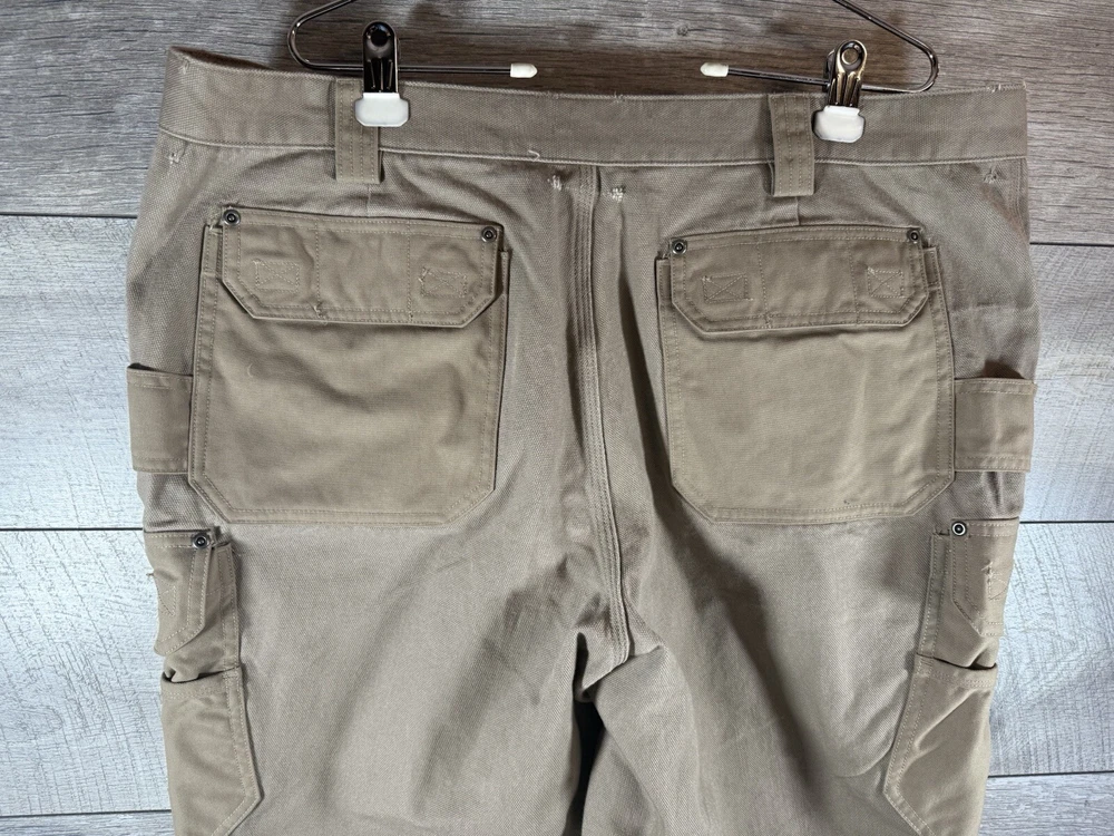 These cargo work pants are tough and comfy, perfect for heavy-duty jobs! The reinforced knees add extra durability, and even though they're used, they're still in great shape—just minor scuffs and tiny holes as described. Super roomy pockets and a sturdy fit make them a steal for the price. Highly recommend for anyone needing reliable workwear!