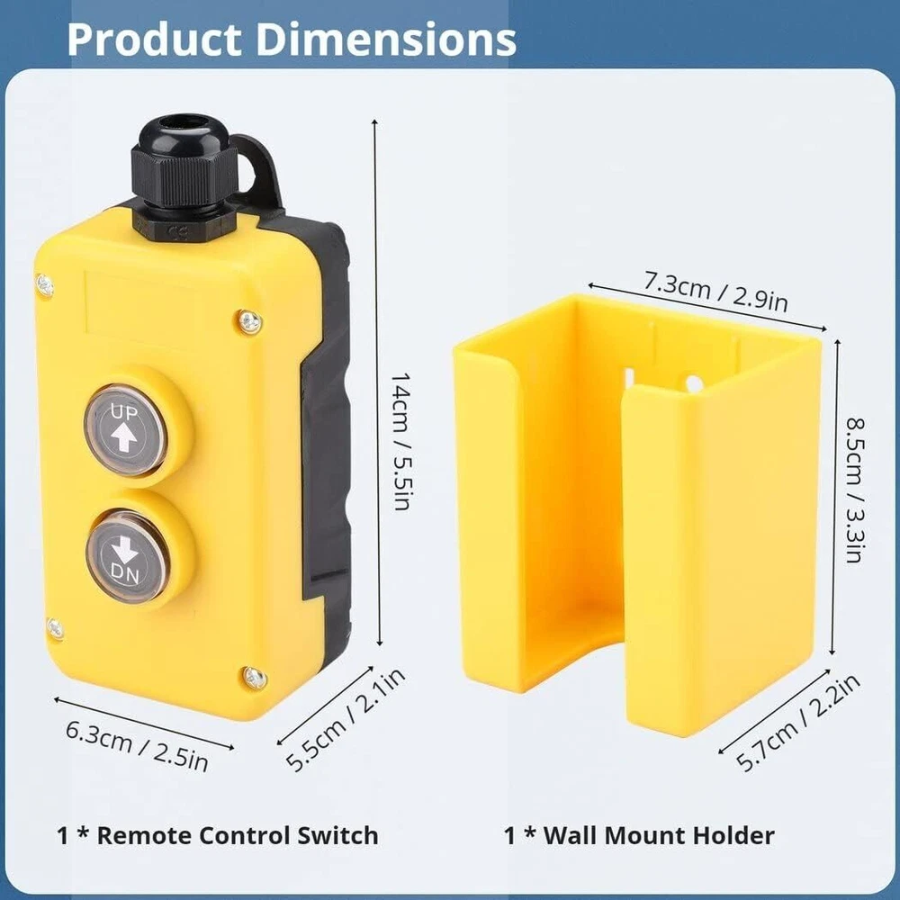 1 【Widely Used】With a size of 5.5 x 2.5 x 2.1 inches, the remote control switch is compact and portable. It’s suitable for most double-acting hydraulic pump power units, such as dump trailers, electric forklifts, electric sanitation vehicles, lifters, automobile tailboards, electric pallet trucks, lifting platforms, boarding bridges, electric basketball racks, and so on. 【3 Installation Methods】3 methods are available for easy access. A wall mount holder is equipped to place the remote control switch, and it perfectly fits the size of the switch. Besides, there are 2 magnets on the back of the switch for magnetic adsorption. You can also hang the switch to the wall via the hanging hole. 【Durable Plastic Protective Shell】The shell is made of high-quality plastic, which is wear-resistant, heat-resistant, anti-impact, and durable for long-term use. It can protect the dump trailer remote control switch from dust, moisture, and even bad weather, providing all-around protection for the wiring inside. 【Remote Control for Up Down】 Using this remote control switch with 2 buttons, you can remotely control a dump trailer to lift or put down items. The remote control is easy to use, bringing more convenience and improving working efficiency with no limitation by distance. 【3-Wire 4-Wire Connecting】Unscrew the back cover with a screwdriver, and you can see the wiring terminals. The remote control switch can be connected with 3 or 4 wires to meet your different needs. The rated voltage is DC 12V. Please refer to the wiring diagram shown in the picture. Product Description