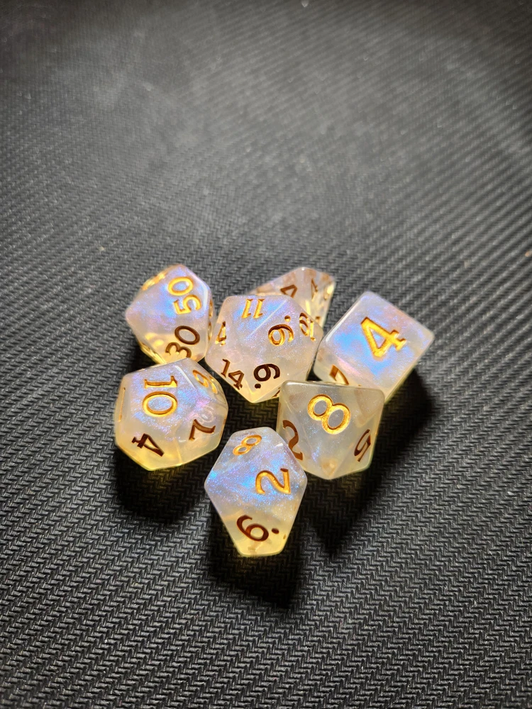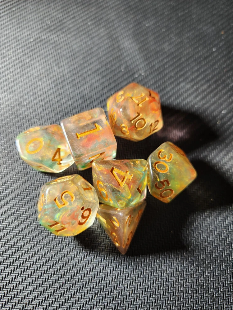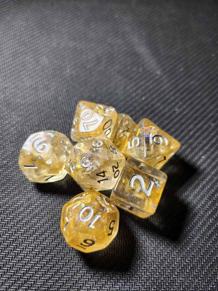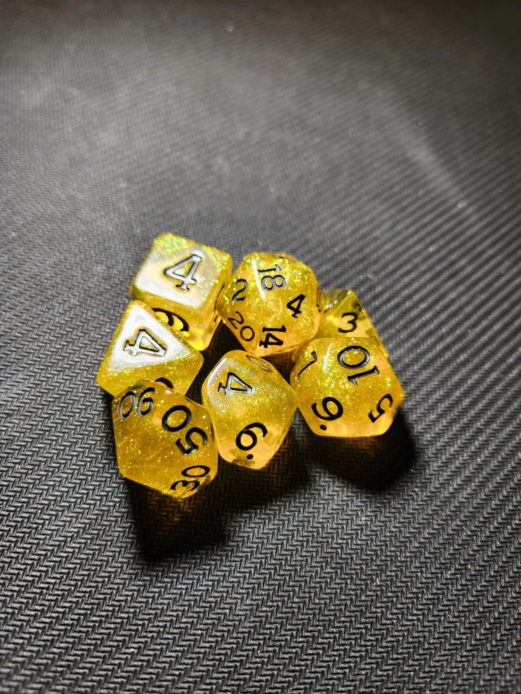Dungeons & Dragons Acererak's Treasure Packs: Gold Edition dice sets. Sold as individual sets so you can choose your own style. I opened 98 treasure packs so people could have the opportunity to choose their own set. I like the randomness of a blind bag on occasion, but it can be frustrating when I'm trying for something specific and seem to have no luck. I did my best at pairing the colors with the correct name and rarity. If you see one that you think I mislabeled, please let me know! Please note that Common: Golden Horizon is the only one with 2 photos. One is significantly less "golden" than the other two. Please specify which you'd like. Flat rate of $4 per bag shipping with $1 for each additional. I have the dice bags and the coins/tokens from the packs up in separate listings. I will combine shipping for all of them if you add them to your cart and request an invoice. Please message with any questions you might have. Check out my other listings for more collectibles and combined shipping!