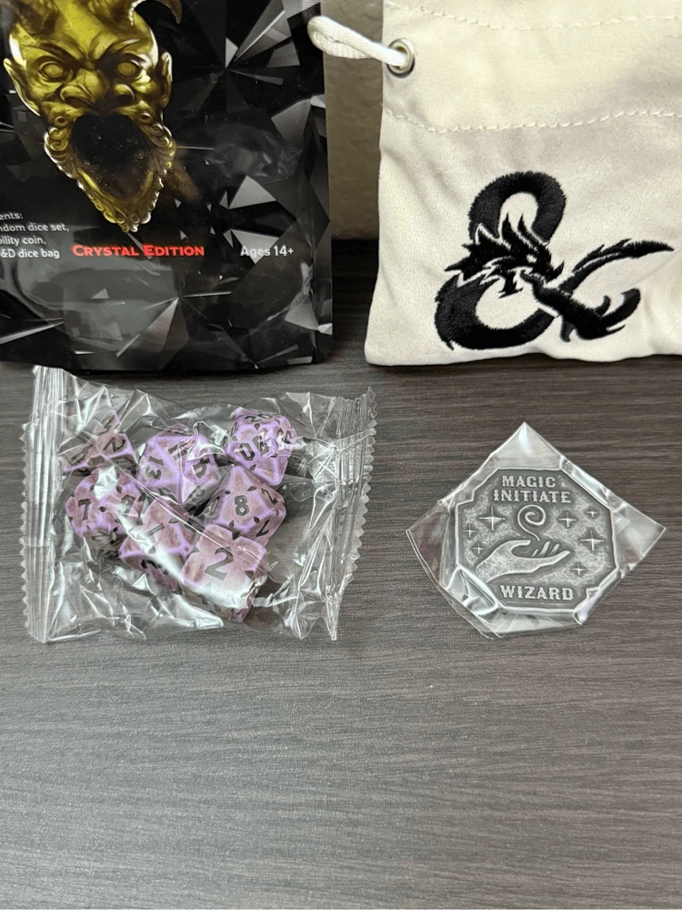 Dungeons & Dragons Acererak's Treasure Crystal Edition Dice Set + Bag + Coin Brand New. Never Used! *Please see pictures for details* Details: 1 dice set 1 dice bag 1 coin I will not responsible for shipment handling or by the carriers. However, I will pack your item with care. :) NO CANCELLATION OR RETURN. ALL SALES ARE FINAL!