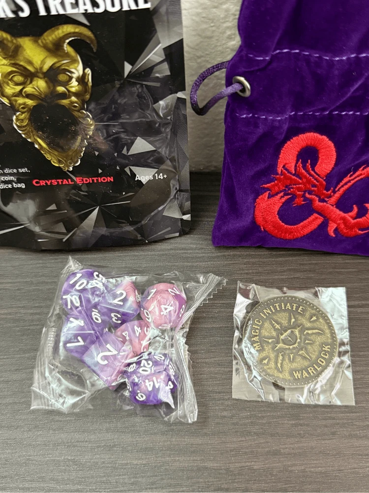 Dungeons & Dragons Acererak's Treasure Crystal Edition Dice Set + Bag + Coin Brand New. Never Used! *Please see pictures for details* Details: 1 dice set 1 dice bag 1 coin I will not responsible for shipment handling or by the carriers. However, I will pack your item with care. :) NO CANCELLATION OR RETURN. ALL SALES ARE FINAL!