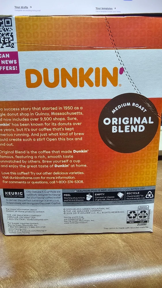 Dunkin Medium Roast Original Blend Coffee Keurig K-Cup Pods 22 Count