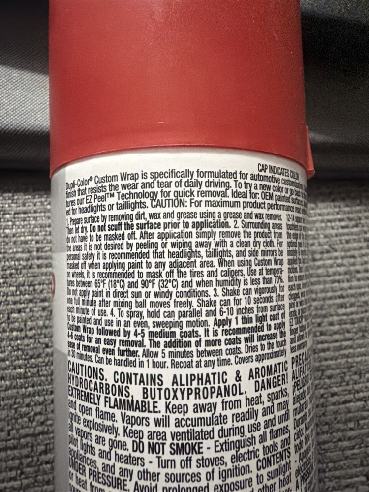 The Dupli-Color Custom Wrap Removable Coating Matte Performance Red 11oz is a high-quality paint spray designed for automotive use. This aerosol spray features a fast-drying formula and a matte finish, perfect for achieving a custom look on your vehicle. With a vibrant red color and base coat paint type, this product is compatible with a universal range of vehicles and is sure to provide a professional finish for your auto paint project.