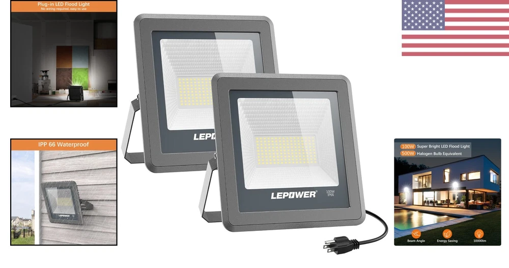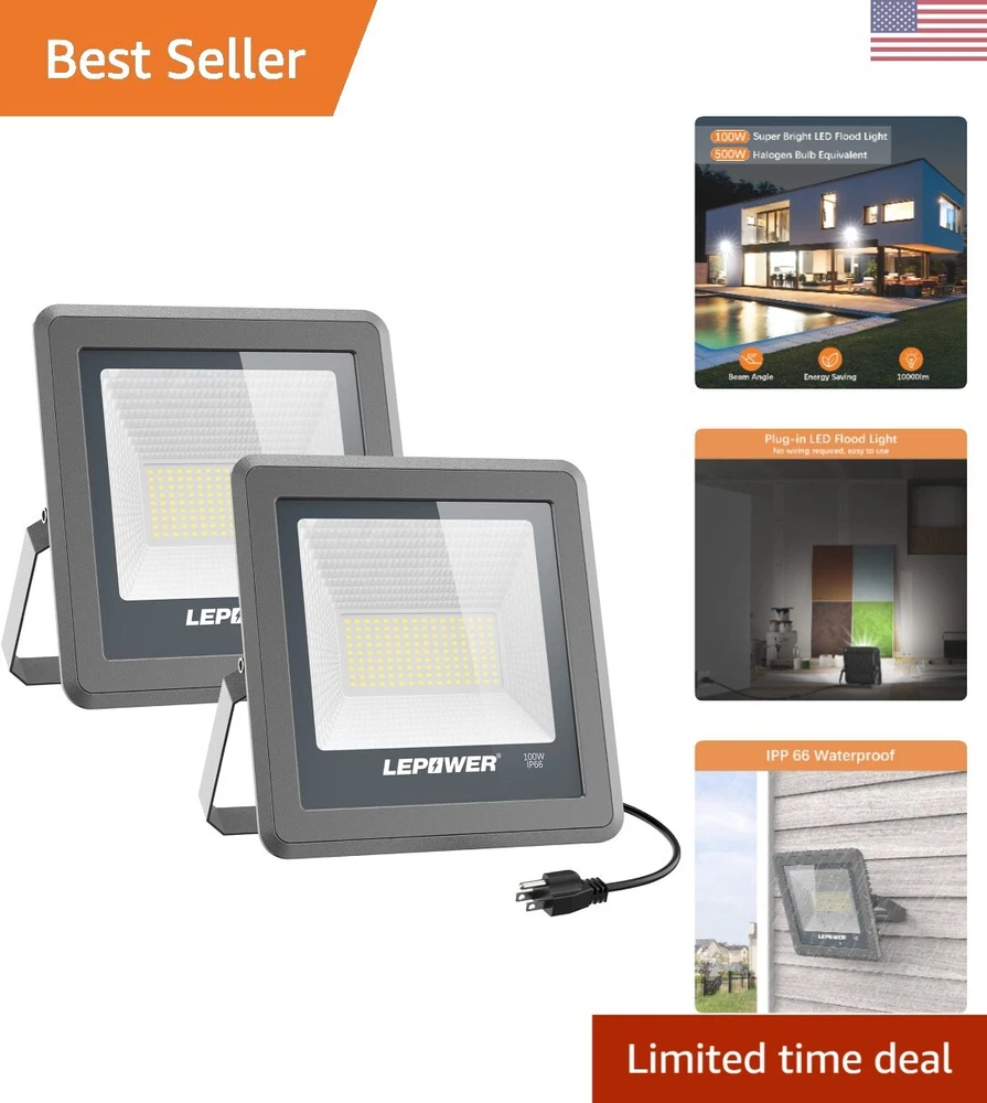 Durable 100W LED Flood Lights with Wide Beam Angle - 2 Pack Outdoor Illumination ‹ › ‹ › ‹ › ‹ › ‹ › ‹ › ‹ › ‹ › ‹ › ‹ › 100W LED Flood Lights - 2 Pack -Durable Outdoor Illumination with Wide Beam Angle Features: Produces 9000-10000 lumens of brightness, equivalent to a 500 watt halogen light Saves over 80% on electricity compared to halogen lights High-quality LED beads for longer service life and brighter light Multi-groove designed radiator for excellent cooling and no overheating FCC certified and UL tested for safety Flexible metal stand for easy installation in various scenarios IP66 waterproof rating for indoor and outdoor use Wide beam angle up to 120 degrees for ultra wide and shadow-free lighting 30,000 hours lifespan for long-lasting use Benefits: High brightness and energy-saving Durable materials and good heat dissipation Safe to use with FCC certification and UL tested plug Easy installation with flexible metal stand Waterproof for indoor and outdoor use Wide beam angle for extensive lighting coverage Long lifespan for lasting performance Why choose our 100W LED Flood Lights? Upgrade your outdoor lighting with our 100W LED Flood Lights, offering high brightness and energy-saving benefits. With durable materials, excellent heat dissipation, and a wide beam angle, these flood lights are perfect for indoor and outdoor use. Plus, with a long lifespan of 30,000 hours, you can enjoy reliable lighting for years to come. Don't settle for inferior lighting options - choose our 100W LED Flood Lights for superior performance and durability. Order your 2 pack today! Shipping Free & Fast Shipping - We offer free shipping to most of the USA with a normal delivery time of 3-7 days. However, due to the current situation, additional delivery time (up to 3 weeks) may be required for some items. Alternative Carriers - We may use alternative carriers (e.g. USPS, FedEx, UPS, etc.) to ensure your package arrives safely and on time. Due to the use of multiple carriers, we are unable to provide a tracking number automatically. Handling Time - Orders are processed and shipped within 1-2 business days of receiving cleared payment. Shipping Restrictions - Shipping to Alaska, Hawaii, Puerto Rico, Guam, and other US territories may incur shipping charges or delivery restrictions. Please contact us before ordering, or your order can be refunded/cancelled. State Restrictions - There may be restrictions based on your state of purchase. For example, certain items may not be shipped to California due to state regulations. Contact for Tracking Updates - If you require tracking updates or have any concerns about the delivery of your order, please feel free to contact us, and we will be happy to assist you. Return 30-Day Hassle-Free Returns - We want you to be completely satisfied with your purchase. If you are not, you can return the item within 30 days of receiving it for a full refund or exchange. Easy Return Process - To start a return, simply contact us and we will provide you with a prepaid return shipping label and detailed instructions. Restocking Fee - There are no restocking fees for returns. However, the buyer is responsible for return shipping costs if the return is not due to a seller's error. Refund Processing Time - Refunds will be processed within 5 business days of receiving the returned item in its original condition. Payment We accept all major credit cards, PayPal, and Apple Pay for your convenience. Your payment information is secure and encrypted to ensure a safe and seamless transaction. Please complete your payment within 3 days of purchase to avoid any delays in shipping. Feedback Your feedback is extremely important to us. We strive to provide the best products and customer service possible. If you are satisfied with your purchase, please take a moment to leave us a positive review. If you have any concerns or issues with your order, please contact us before leaving negative feedback. We are committed to resolving any problems and ensuring your satisfaction. Contact Us If you have any questions or concerns, please feel free to reach out to our customer support team. You can contact us through the eBay messaging system. We are available Monday to Friday, 9:00 am to 5:00 pm EST, and we will do our best to respond to your inquiry within 24 hours. Thank you for supporting our small family business!
