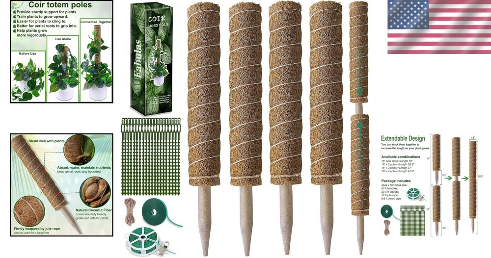 Durable 16 Inch Cocoa Moss Pole Set - Ideal Indoor Support for Climbing Plants ‹ › ‹ › ‹ › ‹ › ‹ › ‹ › ‹ › ‹ › ‹ › Durable 16 Inch Cocoa Moss Pole Set Ideal Indoor Support for Climbing Plants Features: Made from pure natural coconut fiber, free from additives Sharpened stakes for easy insertion into the soil Extendable design allows stacking for varying heights (up to 47.5 inches total) Includes 4PCS of 16 inch moss poles for all your climbing plant needs Bonus Pack: 65ft garden twist ties, 6.6ft hook and loop ties, 16ft jute rope, 20 zip ties Benefits: Provides sturdy vertical support for indoor and outdoor climbing plants Encourages healthy upward growth, mimicking natural light-seeking behavior coconut fiber retains water and nutrients, promoting vigorous growth Naturally blends with greenery, enhancing your home décor Safe for plants and the environment, encouraging sustainable gardening Why Choose Our Cocoa Moss Pole Set? Transform your climbing plants into stunning vertical displays with our Durable 16 Inch Cocoa Moss Pole Set. Each pole is crafted from sustainably sourced coconut fiber, offering a gentle and effective grip for your plants' aerial roots. This material nurtures your plants while ensuring minimal disruption to their growth. Extend and adjust the height of the poles as needed with ease. This versatile set is perfect for various climbing plants, including monstera, ivy, pothos, and philodendrons, enhancing your indoor or outdoor plant arrangements with a touch of nature's elegance. With added ties and ropes, our moss poles provide everything you need to secure your plants as they for the sky. Invest in a lush and lively garden with our Moss Pole Set, and see your plants thrive like never before. If you are not fully satisfied with your purchase, rest assured our dedicated support team will ensure your satisfaction. Create the jungle of your dreams today! Shipping Free & Fast Shipping - We offer free shipping to most of the USA with a normal delivery time of 3-7 days. However, due to the current situation, additional delivery time (up to 3 weeks) may be required for some items. Alternative Carriers - We may use alternative carriers (e.g. USPS, FedEx, UPS, etc.) to ensure your package arrives safely and on time. Due to the use of multiple carriers, we are unable to provide a tracking number automatically. Handling Time - Orders are processed and shipped within 1-2 business days of receiving cleared payment. Shipping Restrictions - Shipping to Alaska, Hawaii, Puerto Rico, Guam, and other US territories may incur shipping charges or delivery restrictions. Please contact us before ordering, or your order can be refunded/cancelled. State Restrictions - There may be restrictions based on your state of purchase. For example, certain items may not be shipped to California due to state regulations. Contact for Tracking Updates - If you require tracking updates or have any concerns about the delivery of your order, please feel free to contact us, and we will be happy to assist you. Return 30-Day Hassle-Free Returns - We want you to be completely satisfied with your purchase. If you are not, you can return the item within 30 days of receiving it for a full refund or exchange. Easy Return Process - To start a return, simply contact us and we will provide you with a prepaid return shipping label and detailed instructions. Restocking Fee - There are no restocking fees for returns. However, the buyer is responsible for return shipping costs if the return is not due to a seller's error. Refund Processing Time - Refunds will be processed within 5 business days of receiving the returned item in its condition. Payment We accept all major credit cards, PayPal, and Apple Pay for your convenience. Your payment information is secure and encrypted to ensure a safe and seamless transaction. Please complete your payment within 3 days of purchase to avoid any delays in shipping. Feedback Your feedback is extremely important to us. We strive to provide the best products and customer service possible. If you are satisfied with your purchase, please take a moment to leave us a positive review. If you have any concerns or issues with your order, please contact us before leaving negative feedback. We are committed to resolving any problems and ensuring your satisfaction. Contact Us If you have any questions or concerns, please feel free to out to our customer support team. You can contact us through the eBay messaging system. We are available Monday to Friday, 9:00 am to 5:00 pm EST, and we will do our best to respond to your inquiry within 24 hours. Buy it now and enjoy a pleasant shopping experience! Unit Quantity: 4 Compatible Plant Type: Cactus,Calathea,Canary Island Date Palm,Christmas Cactus,Dracaena,Ficus,Flowering Plant,Fruit,Orchid,Rose,Rubber Plant,Succulent,Tomato,Vegetable,Vine Features: Extendable,Reusable,Waterproof Suitable For: Seedlings,Seed Starting Type: Plant Support Material: Coir Number in Pack: 4 Color: Brown Item Height: 0.1 Inches Indoor/Outdoor: Indoor & Outdoor Shape: Tube Item Thickness: 0.1 in Item Weight: 1.41 lb Weight Capacity: 30 lb Unit Type: lb