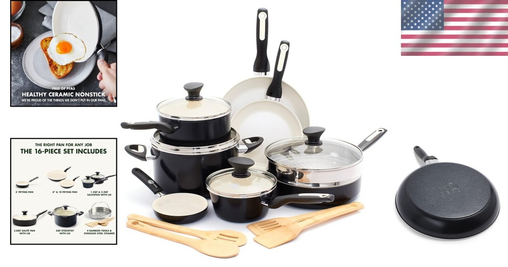 Durable 16-Piece Cookware Set - Nonstick, Oven Safe & Includes Bamboo Utensils ‹ › ‹ › ‹ › ‹ › ‹ › ‹ › ‹ › ‹ › ‹ › ‹ › ‹ › Durable 16-Piece Cookware Set Your culinary journey begins with this exquisite 16-piece cookware set, designed to elevate your cooking experience with its outstanding functionality and vibrant style. Featuring: 5” Frying Pan 8” Frying Pan 10” Frying Pan 1.2QT Saucepan with Lid 2.2QT Saucepan with Lid 2.8QT Sauté Pan with Lid 5QT Stock Pot with Lid Stainless Steel Steamer Four Bamboo Utensils (Solid Spoon, Slotted Spoon, Solid Turner, Slotted Turner) Key Features: Reinforced with Diamonds: Our original diamond-infused nonstick coating offers remarkable durability and is metal utensil safe. Toxin-Free: Crafted with Thermolon healthy ceramic nonstick coating, free of PFAS, PFOA, lead, and cadmium. Tough Aluminum Bodies: Heavy-duty aluminum construction ensures even heating with exceptional strength. Builtin for Oven Cooking: Oven and broiler safe up to 350°F, compatible with all stovetops except induction. Ergonomic Handles: Stay-cool Bakelite handles designed for a comfortable grip without overheating. Enjoy the View: Durable glass lids retain heat and moisture while allowing you to monitor your culinary creations. Easy to Clean: Dishwasher safe for effortless cleaning, with most messes wiping clean with ease. Why Choose Our Cookware Set? Embrace the joy of cooking with a set that brings not only functionality but elegance to your kitchen. The vibrant hues of the Rio collection will brighten your space, while the advanced features guarantee a worry-free cooking experience. Say goodbye to toxic fumes and hello to healthier meals. Each piece is thoughtfully designed to provide you with even heating, safety, and effortless maintenance. Don’t settle for less when you can have a cookware set that transitions seamlessly from stovetop to oven while keeping your meal prep clean and enjoyable. Elevate your culinary artistry today - add this stunning 16-piece cookware set to your kitchen collection now! Shipping Free & Fast Shipping - We offer free shipping to most of the USA with a normal delivery time of 3-10 businessdays. However, due to various situations, additional delivery time (up to 3 weeks) may be required for some items. Alternative Carriers - We may use alternative carriers (e.g. USPS, FedEx, UPS, etc.) to ensure your package arrives safely and on time. Due to the use of multiple carriers, we are unable to provide a tracking number automatically. Handling Time - Orders are processed and shipped within 1-5 business days of receiving cleared payment. Shipping Restrictions - Shipping to Alaska, Hawaii, Puerto Rico, Guam, and other US territories may incur shipping charges or delivery restrictions. Please contact us before ordering, or your order can be refunded/cancelled. State Restrictions - There may be restrictions based on your state of purchase. For example, certain items may not be shipped to California due to state regulations. Contact for Tracking Updates - If you require tracking updates or have any concerns about the delivery of your order, please feel free to contact us, and we will be happy to assist you. Return Please see our ebay return policy. We do not accept return on most products. This is to avoid customers mis-using ebay returns. All sales are final. Please be sure to check the return policy listed at the top of the listing. In rare cases, we may accept returns, if the buyer pays both ways shipping and 20% restocking fee. If you are un-sure of return policy of a particular item, please ask before buying. Payment We accept all major credit cards, PayPal, and Apple Pay for your convenience. Your payment information is secure and encrypted to ensure a safe and seamless transaction. Please complete your payment within 3 days of purchase to avoid any delays in shipping. Feedback Your feedback is extremely important to us. We strive to provide the best products and customer service possible. If you are satisfied with your purchase, please take a moment to leave us a positive review. If you have any concerns or issues with your order, please contact us before leaving negative feedback. We are committed to resolving any problems and ensuring your satisfaction. Contact Us If you have any questions or concerns, please feel free to reach out to our customer support team. You can contact us through the eBay messaging system. We are available Monday to Friday, 9:00 am to 5:00 pm EST, and we will do our best to respond to your inquiry within 24 hours. Buy it now and enjoy a pleasant shopping experience! UPC: Not Set Unit Quantity: 8.89 kg Stove Type Compatibility: Electric,Gas Material: Healthy ceramic nonstick,Bakelite Features: Dishwasher Safe,Easy Clean,Non-Stick,Oven Safe Set Includes: Frying Pan,Saucepan,Sauté Pan,Stock Pot,Stainless Steel Steamer,Bamboo Solid Spoon,Bamboo Slotted Spoon,Bamboo Solid Turner,Bamboo Slotted Turner Type of Oven: Electric,Gas Brand: Unbranded Surface Coating: Non-Stick Color: Black Type: Pan Set Item Width: Not Set Item Length: Not Set Item Diameter: 10 in MPN: Not Set Number of Items in Set: Sixteen-Piece Country/Region of Manufacture: Not Set Shape: Not Set Manufacturer Warranty: Not Set Item Height: Not Set Item Depth: 6.7 in Heat Resistance: 350°F Item Weight: 8.89 kg Model: Not Set Unit Type: Not Set